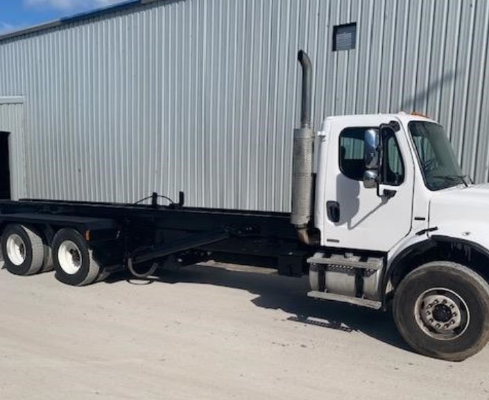 This 2005 Freightliner Business Class M2 106 Roll Off Garbage Truck is powered by a Mercedes-Benz 450 HP engine paired with an Eaton-Fuller 8LL manual transmission. The truck features a 6x4 drive, tandem axles, and left-hand drive setup. Odometer shows 995,706 km (618,703 miles). Ready for service, this heavy-duty unit offers performance and value for your waste or recycling operation.