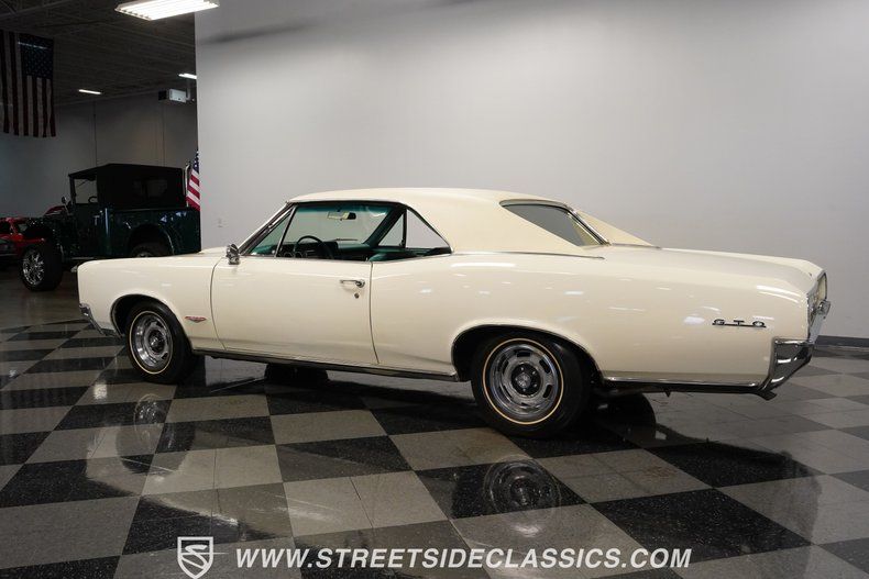 Highlights: 1966 Pontiac GTO Tri Power Model 389ci V8 Engine With Tri Power Carburetors Power Steering Factory Air Conditioning Dark Turquoise Vinyl Bucket Seats Power Driver Seat And Power Windows Rear Window Defrost Glossy Cameo White Paint With Black Vinyl Top Pontiac 10 Bolt Rear End With Limited Slip Differential Dual Exhaust With Replacement Mufflers Factory Style Suspension Front And Rear F70-14 Firestone Thin Whitewall Tires PHS Documentation And Reproduction Window Sticker Financing Available Vehicle Protection Plans Available Worldwide Shipping