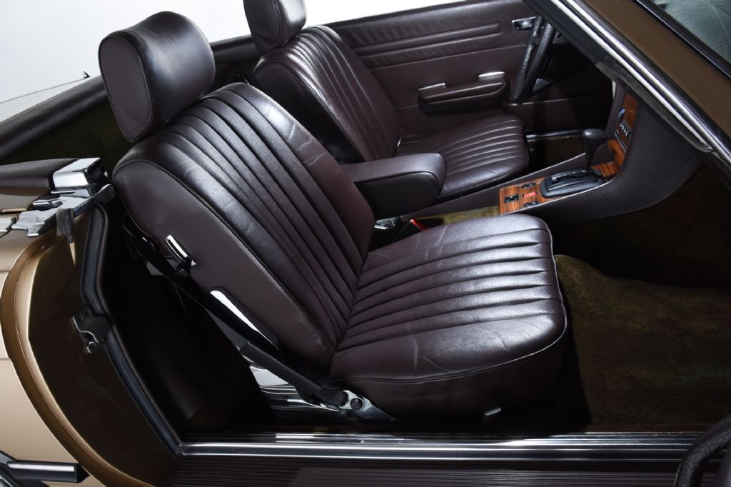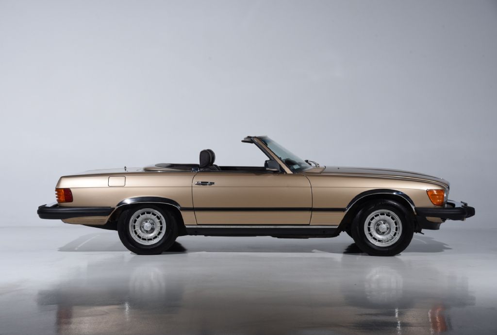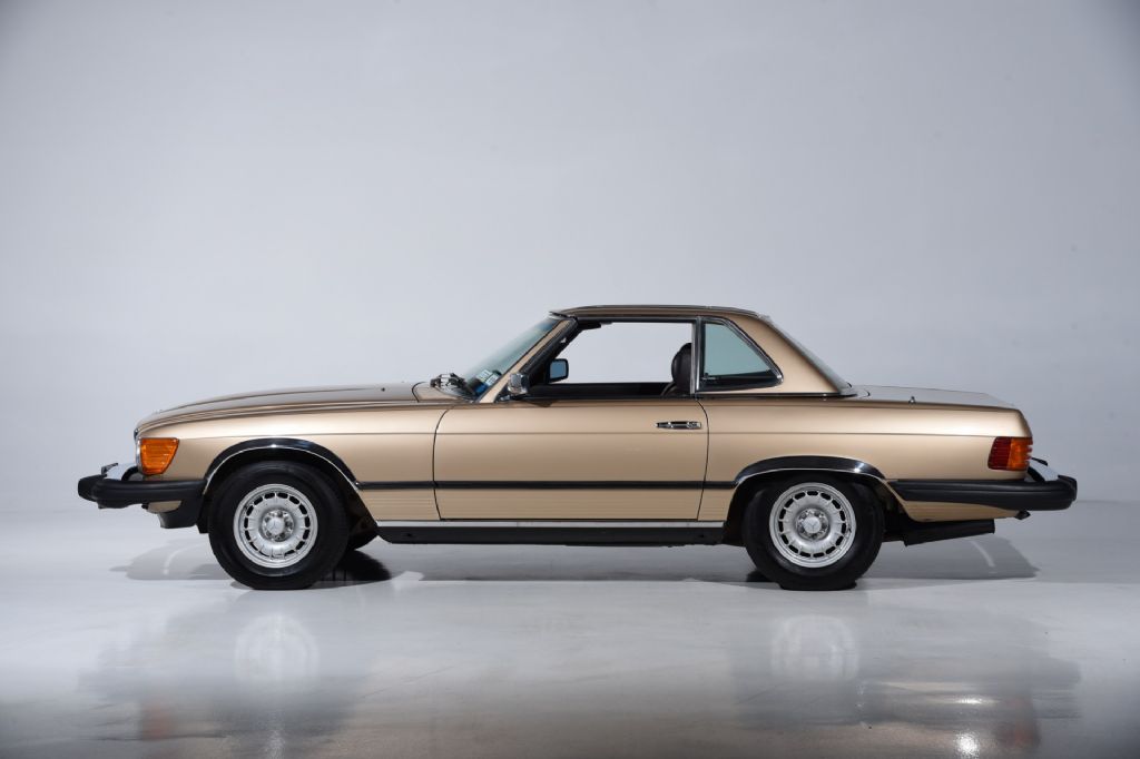 1983 Mercedes-Benz 380SL for sale! Motorcar Classics is pleased to present this stunning 1983 Mercedes-Benz 380SL which stands out in elegant Champagne Metallic over Brazil Leather and has only 31,125 miles from new, reflecting outstanding preservation and careful stewardship throughout its life. Power comes from the coveted 3.8-liter M116 V8 paired with a smooth four-speed automatic transmission, driving the rear wheels for classic performance. The car is equipped with factory features such as a paint-matched removable hardtop, new German fabric soft top, automatic climate control, central locking, cruise control, Becker Grand Prix radio, fog lamps, and power windows.