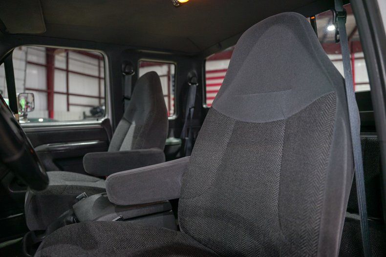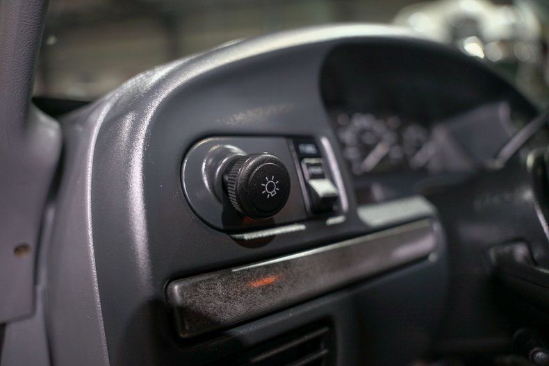 Inside, the dark grey custom cloth interior is clean and functional, with power seats, air conditioning, cruise control, and a full suite of driver gauges including battery and oil pressure. The original AM/FM radio includes adjustable bass, treble, balance, and fade-simple but effective, just like the truck itself.