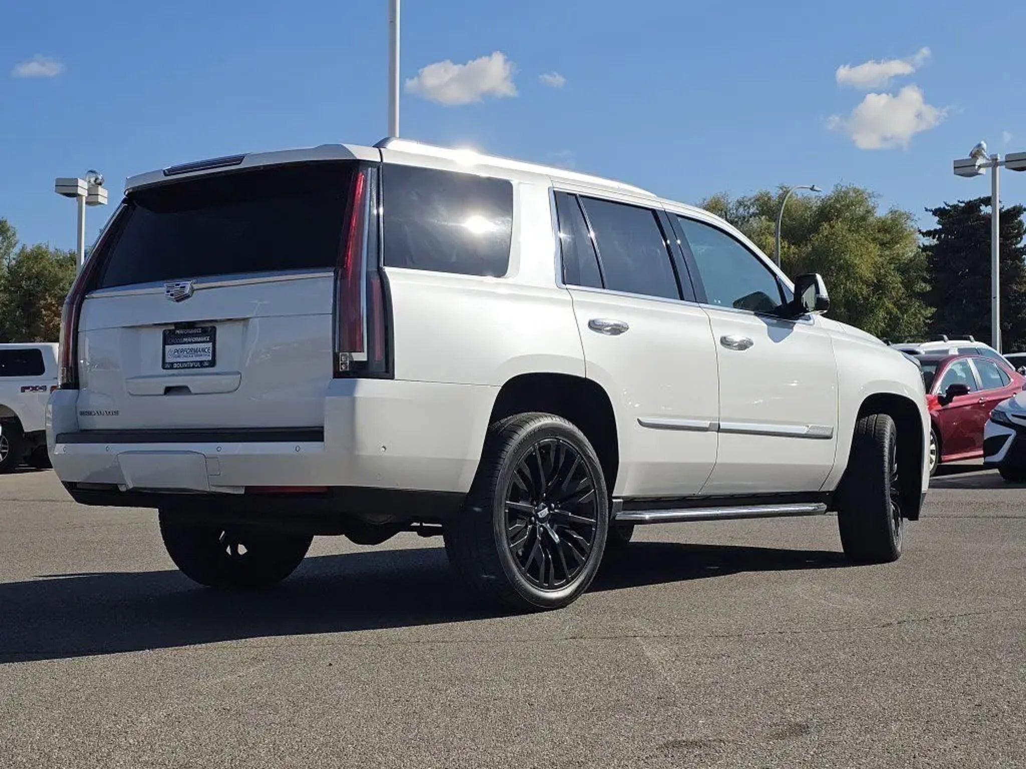 *Ford Blue Advantage Certified* and loaded with convenient features like: DRIVER AWARENESS PACKAGE, PREFERRED EQUIPMENT GROUP 1SB, LEATHER, DVD, MOONROOF, HEATED & COOLED SEATS, HEADS-UP DISPLAY, POWER LIFTGATE, NAVIGATION, ANDROID AUTO, LANE DEPARTURE WARNING, 3RD ROW SEATING, ALLOY-WHEELS, APPLE CARPLAY, HEATED SEATS, BLUETOOTH, BACKUP CAMERA, POWER SEAT, Remote Entry. *Save thousands in maintenance* by purchasing this Ford Blue Advantage Pre-Owned *2019 Cadillac Escalade Luxury* with only 110,254 miles!This stunning *2019 Cadillac Escalade Luxury* features a beautiful *White* exterior and a *Black* interior.Compare, adjust and save your payment options on every Certified Ford vehicle in stock at: PerformanceFordBountiful.com*Technology and Entertainment Features Include:* Navigation System, Bluetooth Connection, Garage Door Opener, SiriusXM Satellite Radio, HD Radio and Second-row Sunroof, Air Conditioned Front Seats, Automatic Climate Control, Rear Heat / AC, Heated Steering Wheel, Heated Rear Seats, Compass, Leather Wrapped Steering Wheel, Memory Seats, Power Moonroof, Steering Wheel Audio Controls, Air Conditioning, Rear Reading Lights, Telescoping Wheel, Illuminated entry, Memory Mirrors, Bucket Front Seats, Single-Disc CD Player, Center Console Storage, Multi-zone Climate Control, Trip Odometer, Outside Temperature Gauge, Split Folding Rear Seat, Vanity Mirrors, Center Armrest, Tilt Steering Wheel, Reading Lights, Rear Window Defroster, Overhead Console.*Safety and Economy Features Include:* Back-Up Camera, Post Collision Braking-System, Cross Traffic Alerts, Lane Keeping Assist System, Rain Sensing Wipers, Electronic Stability Control, Aftermarket Anti Theft System, Security System, Brake Assist, Integrated Turn Signal Mirrors, Overhead airbag, Tire Pressure Monitoring System, Dual Air Bags, Auto-Dimming Door Mirrors, Auto Highbeams, ABS Brakes, Delay-off headlights, Low tire pressure warning, Driver Front Side Impact Air Bag, Passenger Air Bag Sensor.This vehicle has an EPA rated fuel economy of 21.0 highway / 14.0 city1.This Ford Blue advantage Certified 2019 Cadillac Escalade Luxury passed a rigorous inspection of mechanical, electrical and aesthetic details and comes with a 139-point inspection, completed by one of our factory-trained technicians. For your safety and convenience, this vehicle comes fully-detailed and sanitized. Every Ford Gold Certified Pre-Owned Vehicle from Performance Ford Lincoln Bountiful comes with a 172-point inspection and Blue Certified vehicles*Warranties include* For Ford vehicles, a comprehensive limited warranty for 12 months/12,000 miles. Along with this comprehensive limited warranty, 7-year/100,000-mile powertrain limited warranty coverage is included with every Ford Gold Certified Pre-owned vehicle.2, Complimentary 24/7 Roadside Assistance.3. Lincoln Certified vehicles come with a limited warranty that covers repair or replacement of covered components for six years from the original Lincoln New-Vehicle Limited Warranty start date, or up to 100,000 miles on odometer- whichever comes first. Coverage includes parts and labor, but excludes wear-and-tear items. Painstakingly reconditioned to the manufacturer's exacting standards by factory-trained technicians. Please see dealer for additional details.*Performance Ford Lincoln Bountiful proudly offer our customers at-home services including *Performance Valet*! When you purchase from Performance Ford Lincoln Bountiful, you will be eligible for *Complimentary Pickup & Delivery*^ for your future service appointments! We value your time and that's why want to give you the best buying and service experiences in Bountiful! Also, ask your product specialist about our home test drives and deliveries. Save time and money through our exclusive Performance Remote Services! Distance limitations may apply.Our dealership is conveniently located off Exit 315 on I-15, North of Salt Lake City. We proudly serve the communities of Bountiful, Centerville, North Salt Lake, Farmington, Salt Lake City, Kaysville, South Salt Lake, Layton, Canyon Rim, Millcreek, West Valley City, Murray, Holladay, Taylorsville, and Syracuse. As a proud member of the family-owned Performance Automotive Network, we have access to thousands of new and used vehicles. This gives us the ability to find the perfect vehicle to fit your needs and budget.*Need financing assistance?* Our strong, group-wide relationships with several lending institutions allow us to offer the most competitive rates! We will give you top-dollar for your trade or make you a cash offer if you'd prefer the convenience of selling directly.With our aggressive pricing strategy, most vehicles sell within the first few weeks, so please contact us ahead of time at * * to ensure the vehicle is still available and ready for your test drive.*We'll Put A Smile On Your Face! *1Based on EPA mileage ratings. Use for comparison purposes only. Your mileage will vary depending on driving conditions, how you drive and maintain your vehicle, etc.2Blue Certified includes a 90-Day or 4,000 mile comprehensive limited warranty coverage. See your dealer for warranty coverage details.37 Years for Gold Certified vehicles and 90 days for Blue Certified vehicles. Ford Roadside Assistance is included for certain owners and available to everyone for a per service fee. Ford reserves the right to change program details without obligations.*Terms and conditions of warranties vary by brand and vehicle. See dealer for complete details or sign in to download a copy of your vehicle's warranty. Warranty may be restricted or denied if your vehicle or part has been modified, improperly maintained or removed.Delivery to door for Test Drive.