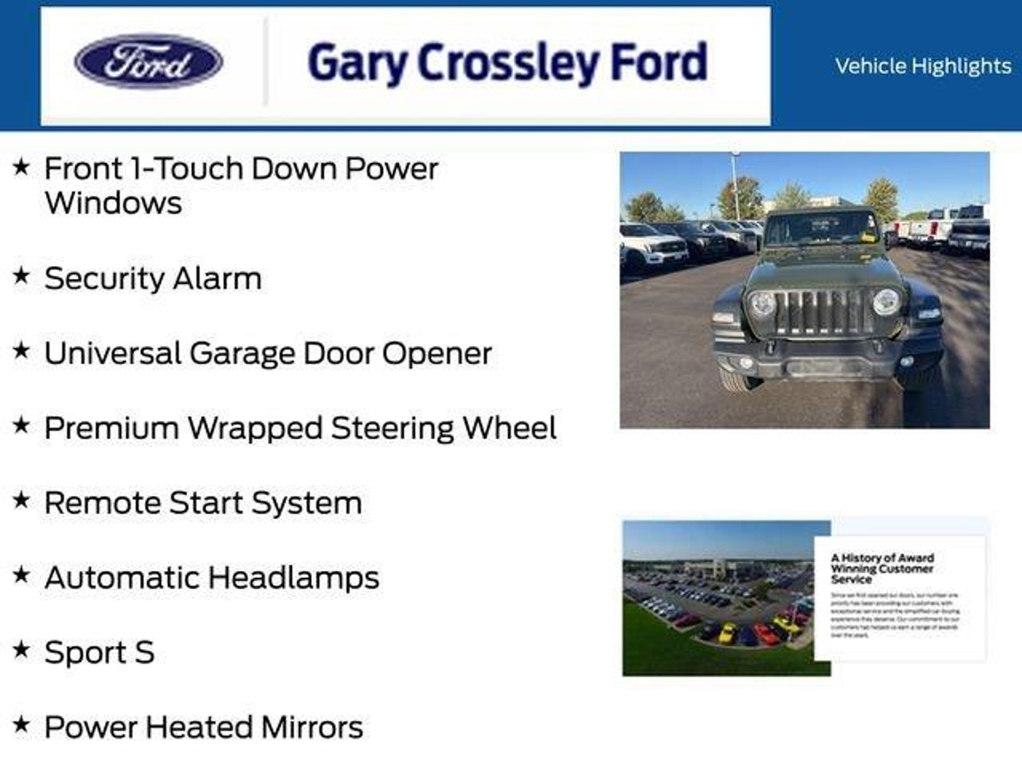 ** One Owner **, ** Car Fax Reported Well Maintained Vehicle **, ** Local Trade In **, ** Apple CarPlay & Android Auto **, ** Push Button Start **, ** Rear Back Up Camera **, ** Remote Start **, ** Heated Seats **, ** Heated Steering Wheel **, Automatic Headlamps, Cold Weather Group, Cold Weather Group (DISC), Convenience Group, Deep Tint Sunscreen Windows, Front 1-Touch Down Power Windows, Heated Front Seats, Heated Steering Wheel, Power Heated Mirrors, Premium Wrapped Steering Wheel, Quick Order Package 25S Sport S, Remote Keyless Entry, Remote Start System, Security Alarm, Speed Sensitive Power Locks, Sport S, Sun Visors w/Illuminated Vanity Mirrors, Universal Garage Door Opener, Wheels: 17 x 7.5 Tech Silver Aluminum. CARFAX One-Owner. Sarge Green Clearcoat 2023 Jeep Wrangler Sport S 3.6L V6 24V VVT 2D Sport Utility 4WD 8-Speed Automatic