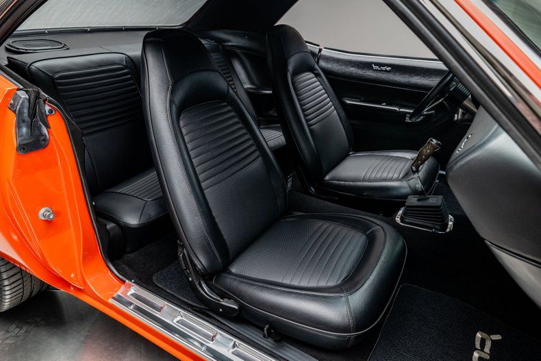 Finished in Hemi Orange and detailed with a HEMI hockey stripe, the car wears a mix of factory lines and subtle metalwork that make it both recognizable and distinct. The front valance was extended and reshaped, the rear valance molded in, and the rockers stretched to conceal the pinch welds. Marker lights were shaved, bumpers were tucked tight to the body, and Harley-Davidson Road King driving lamps were integrated into the front valance and feature LED turn signals. The look is cohesive and confident, showing how far refinement can go without losing character. Every inch was designed to modernize the E-body's aggression while preserving its silhouette.
