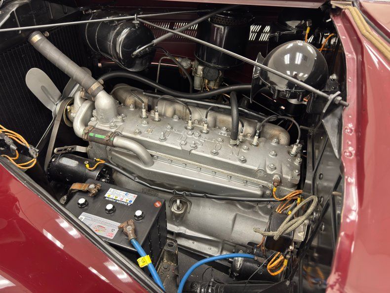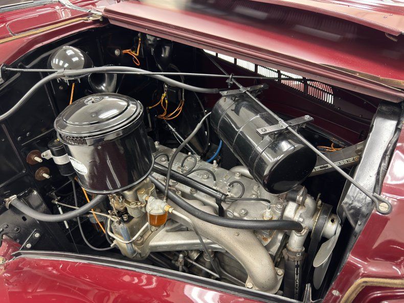 The Custom Eight Series 77 was the most luxurious offering from Hudson at the time, and one look at this incredible car and its 129" wheelbase makes that evident. Stately, handsome, and elegant, its color is aptly named, Royal Maroon. The fully expressed arching fenders flow back to give this upright car some movement, connected by a substantial running board and fender skirts on the rear are adorned with an ornamental crest. Entering the car entails opening the barn door like configuration with wide portals and a high roof while a long nose is led by a translucent ornament and amber fog lights. In the rear, a humpback luggage compartment fulfills the need for extra space, reserving the cabin for human comfort alone. This stunner passes the white glove test with flying colors and we could find no glaring exterior imperfections.
