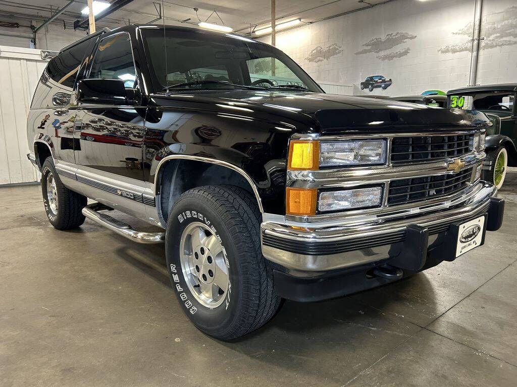 Here is a clean 1994 Chevrolet Blazer 4x4 2dr in tutone black and silver with gray cloth interior seats and room for five passengers. For the year and miles, the condition is fantastic. This Blazer has the Silverado package, which gives it luxury-level amenities. This SUV has been well cared for and has a clean Carfax report. It has no rust and is sitting on factory 16' wheels. The body is straight, and the paint shines nicely with few flaws. Under the hood is a 5.7L V8 engine coupled to a 4-speed automatic transmission w/overdrive and Instra-Trac 4-wheel-drive, so your next adventure awaits. The undercarriage is very clean and reflects the care this Chevy has received over the years. This Blazer 4x4 is well equipped with options such as p. windows, p. locks, p. mirrors, driver's power seat, heat and cold A/C, 4WD low, and AM/FM with Cassette, tow package, and more. This Blazer 4x4 gets up, accelerates effortlessly on the road, and shifts smoothly. This 1994 Chevy Blazer 4x4 is super clean and is worth a closer look.