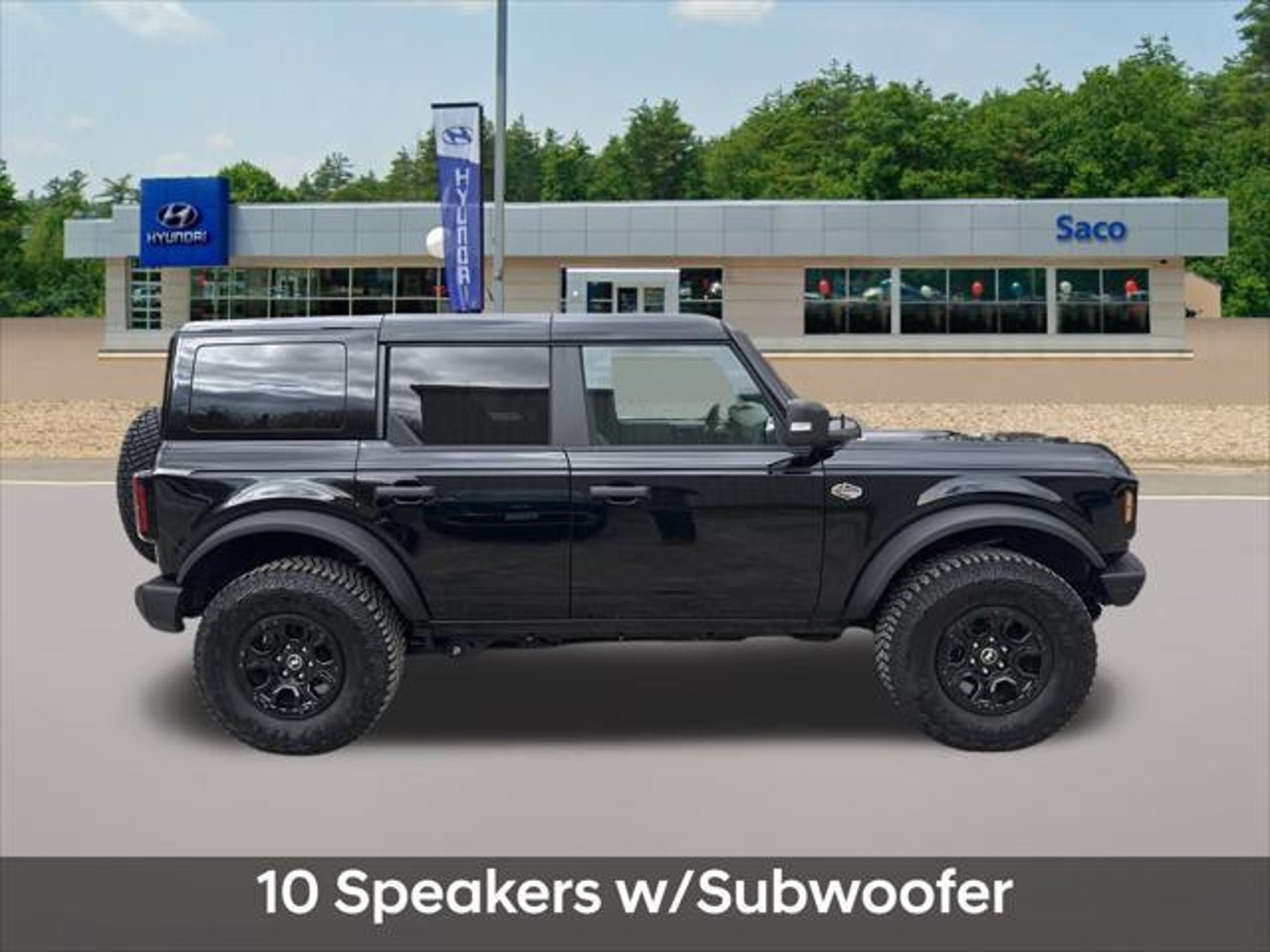 2024 Ford Bronco Wildtrak 4WD Shadow Black 10-Speed Automatic 2.7L EcoBoost V6 10 Speakers w/Subwoofer 360-Degree Camera Adaptive Cruise Control Additional Sound Deadening Equipment Group 354A High/Lux Package Evasive Steering Assist Front Parking Sensors Heated Steering Wheel Information on Demand Panel Navigation system: Connected Navigation Radio: B&O Sound System by Bang & Olufsen Sideview Mirrors Universal Garage Door Opener Wireless Charging Pad Recent Arrival!
