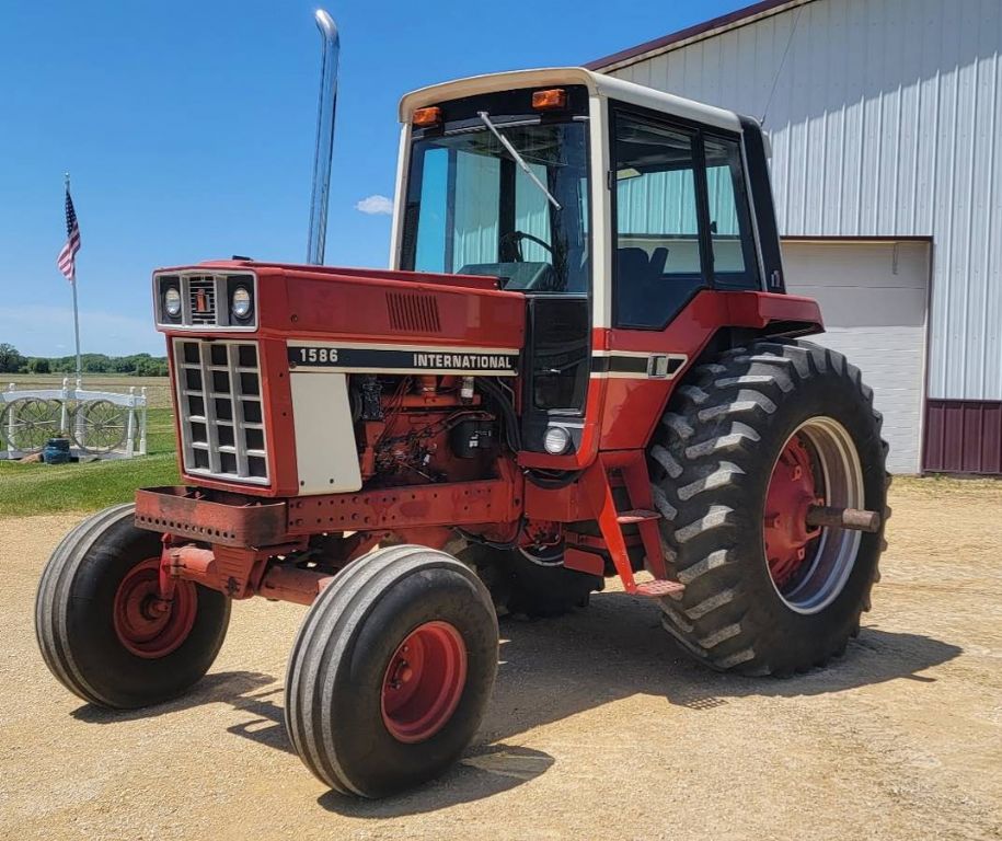 1976 International 1586 Tractor This 1976 International 1586 Tractor is a solid and dependable workhorse, ready for the field. It features a new stereo and a new seat for added comfort during long hours of operation, with an interior thats in good condition overall. Equipped with dual hydraulics and a 540/1000 PTO, this tractor offers the versatility and power needed for a wide range of implements. It rides on 20.8-38 rear tires and 11.00-16 front tires, providing excellent traction and stability. Whether you're working the land or maintaining property, this 1586 delivers reliable performance and classic International durability. Located in Caledonia, IL 61011 For more information, please call 833-265-6113 and mention ID 127711 Serial Number: