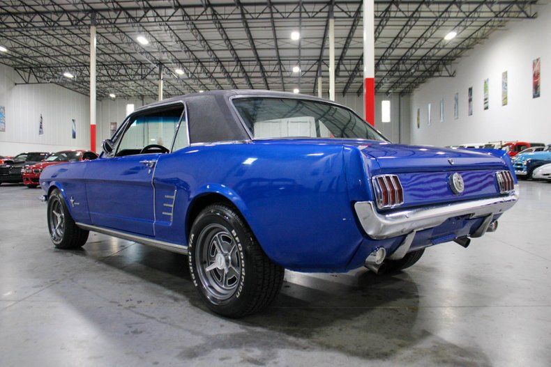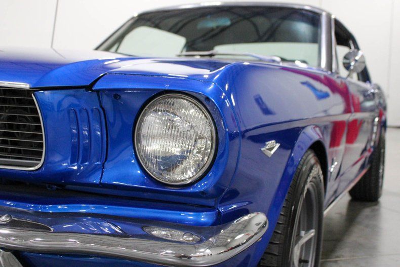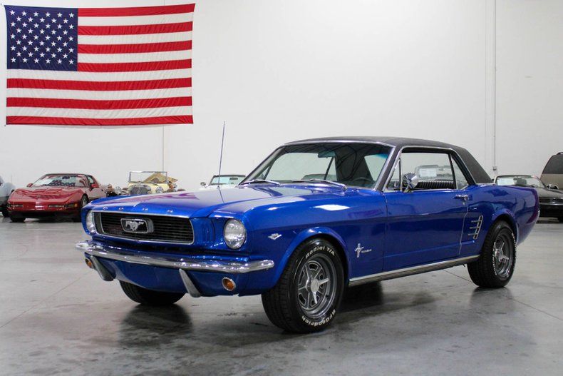 This 1966 Ford Mustang Coupe presents a timeless combination of classic style and modern performance. Finished in an attractive shade of blue accented by a black vinyl top, this Mustang exudes vintage curb appeal while offering tasteful upgrades under the hood. It rides on American Racing wheels that complement its iconic profile, while the chrome trim and classic badging complete the unmistakable first-generation Mustang look.