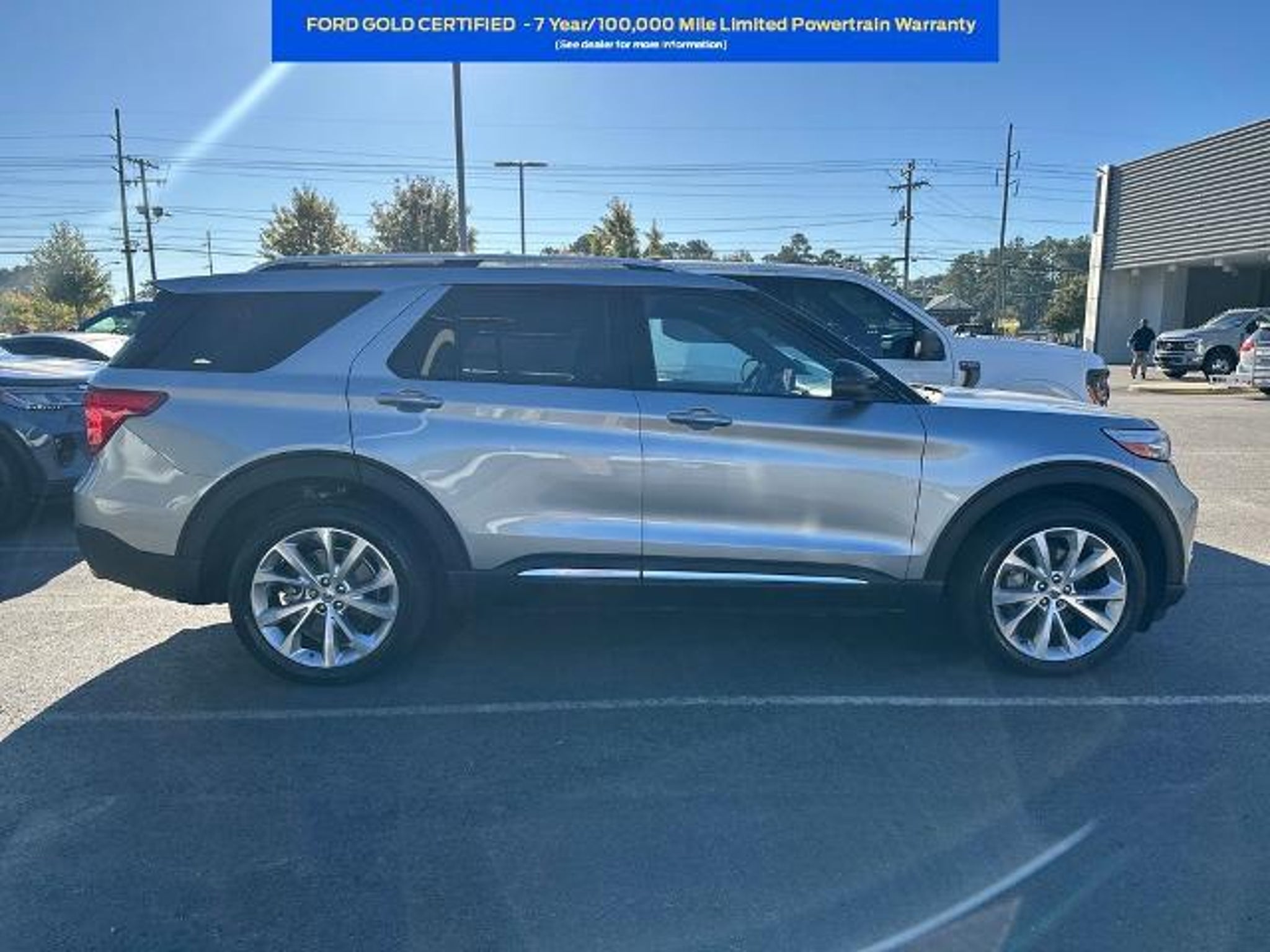 Odometer is 1650 miles below market average! Ford Gold Certified Certified, 4WD, Hybrid Equipment Group 600A, 10.1 LCD Capacitive Portrait Touchscreen, 12 Speakers, 1st Row Heated Seats, 2 Additional Speakers, 2nd Row Heated Seat Controls Credit, 3.73 Non-Limited-Slip Rear Axle Ratio, 3rd row seats: bench, 4-Wheel Disc Brakes, ABS brakes, Air Conditioning, Alloy wheels, AM/FM radio: SiriusXM, Auto High-beam Headlights, Auto-dimming door mirrors, Auto-dimming Rear-View mirror, Automatic temperature control, Brake assist, Bumpers: body-color, Compass, Delay-off headlights, Driver door bin, Driver vanity mirror, Dual front impact airbags, Dual front side impact airbags, Electronic Stability Control, Emergency communication system: SYNC 3 911 Assist, Exterior Parking Camera Rear, FordPass Connect, Four wheel independent suspension, Front & Second Row Floor Liners (16B), Front anti-roll bar, Front Bucket Seats, Front Center Armrest, Front dual zone A/C, Front fog lights, Front reading lights, Fully automatic headlights, Garage door transmitter, Genuine wood dashboard insert, Hands-Free Liftgate Delete, Heated door mirrors, Heated front seats, Heated rear seats, Heated steering wheel, Illuminated entry, Knee airbag, Leather Htd/Ventilated Sport Captain's Chairs, Leather steering wheel, Low tire pressure warning, Memory seat, Navigation System, Occupant sensing airbag, Outside temperature display, Overhead airbag, Overhead console, Panic alarm, Passenger door bin, Passenger vanity mirror, Power door mirrors, Power driver seat, Power Liftgate, Power passenger seat, Power steering, Power windows, Radio data system, Radio: B&O Sound System by Bang & Olufsen, Rain sensing wipers, Rear air conditioning, Rear anti-roll bar, Rear Auxiliary Controls Credit, Rear reading lights, Rear window defroster, Rear window wiper, Remote keyless entry, Roof rack: rails only, Security system, Speed control, Speed-sensing steering, Speed-Sensitive Wipers, Split folding rear seat, Spoiler, Steering wheel memory, Steering wheel mounted audio controls, SYNC 3 Communications & Entertainment System, SYNC 3/Apple CarPlay/Android Auto, Tachometer, Technology Package, Telescoping steering wheel, Tilt steering wheel, Traction control, Trip computer, Turn signal indicator mirrors, Twin Panel Moonroof, Variably intermittent wipers, Ventilated front seats, Voice-Activated Touchscreen Navigation System, Wheels: 21 Bright Machined-Face Aluminum, 4WD, Hybrid Equipment Group 600A. 2022 Ford Explorer Platinum Certified. Ford Gold Certified Details: