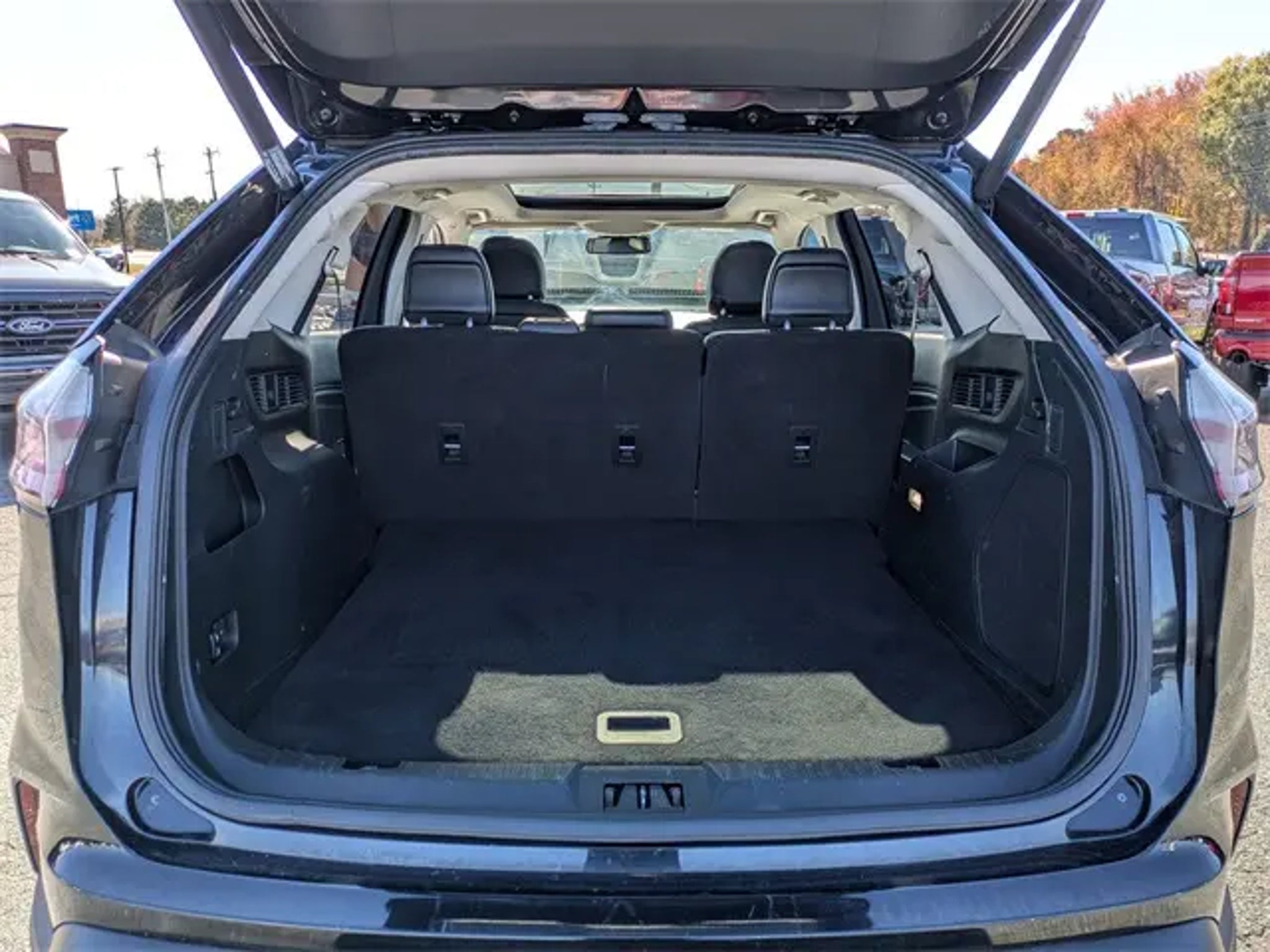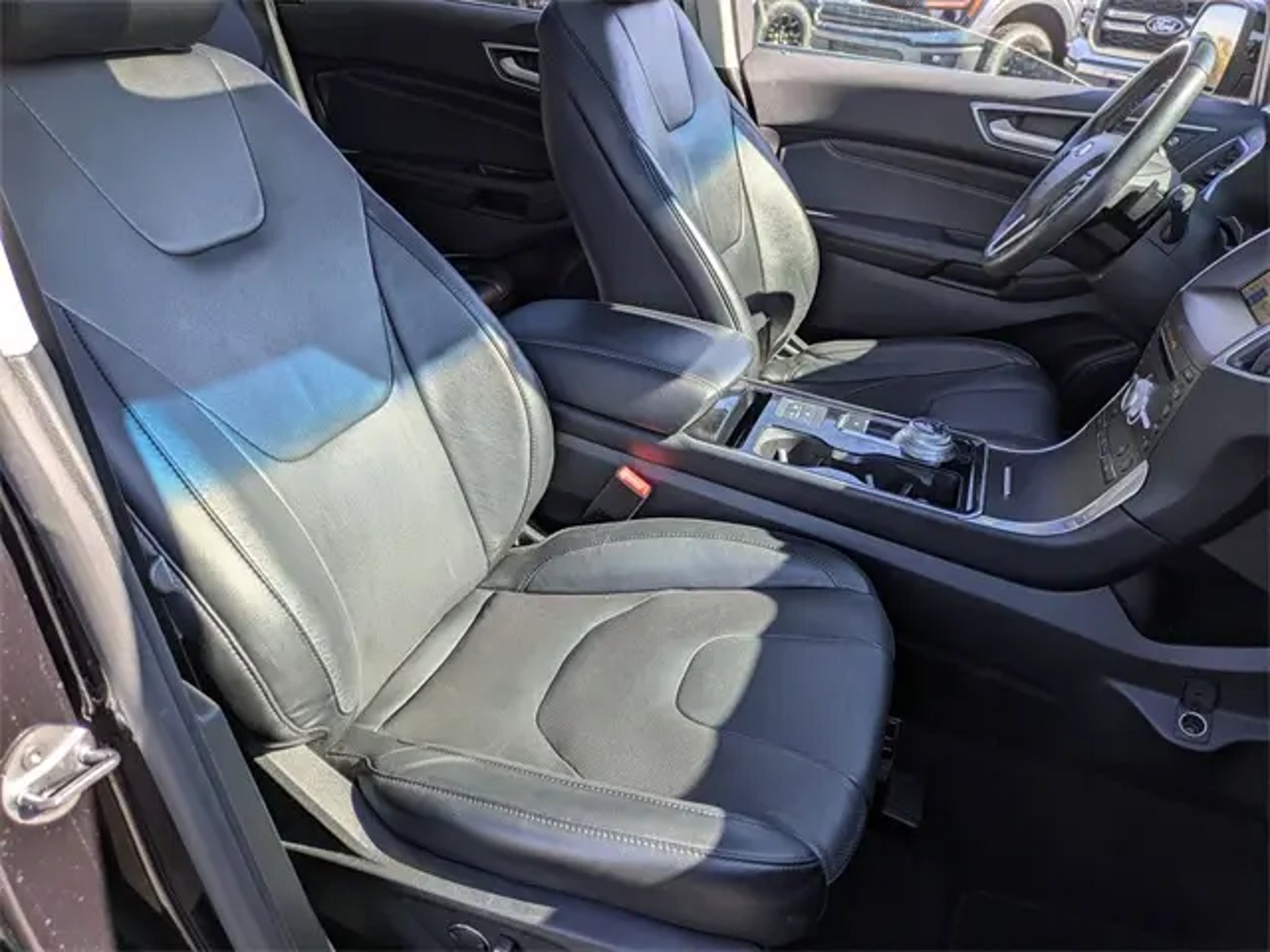 Black Metallic 2019 Ford Edge Titanium 4D Sport Utility AWD EcoBoost 2.0L I4 GTDi DOHC Turbocharged VCT 8-Speed Automatic Panoramic Roof, Backup Camera, Heated Seats, Cooled Seats, Leather, Navigation, Bluetooth, Push Button Start, Premium Stereo, CarPlay and Android Auto, Parking Sensors, Blind Spot Monitoring, Adaptive Cruise Control, AWD, Equipment Group 301A. This Edge Titanium is nicely equipped with Equipment Group 301A (Adaptive Cruise Control w/Stop & Go, Adaptive LED Headlamps, Auto-Dimming Driver's Sideview Mirror, Enhanced Active Park Assist, Evasive Steering Assist, Front 180 Degree Camera, Heated Rear-Seats, Leather Trimmed Heated/Cooled Bucket Seats, Panoramic Vista Roof, SiriusXM Traffic & Travel Link, and Voice-Activated Touchscreen Navigation System), AWD, 12 Speakers, 4-Wheel Disc Brakes, ABS brakes, Air Conditioning, Alloy wheels, AM/FM radio: SiriusXM, AppLink/Apple CarPlay and Android Auto, Auto High-beam Headlights, Auto tilt-away steering wheel, Auto-dimming Rear-View mirror, Automatic temperature control, Axle Ratio: TBA, Brake assist, Bumpers: body-color, CD player, Compass, Delay-off headlights, Driver door bin, Driver vanity mirror, Dual front impact airbags, Dual front side impact airbags, Electronic Stability Control, Emergency communication system: SYNC 3 911 Assist, Four wheel independent suspension, Front anti-roll bar, Front Bucket Seats, Front Center Armrest w/Storage, Front dual zone A/C, Front fog lights, Front License Plate Bracket, Front reading lights, Fully automatic headlights, Garage door transmitter, Heated door mirrors, Heated front seats, Illuminated entry, Knee airbag, Leather-Trimmed Heated Sport Bucket Seats, Low tire pressure warning, Memory seat, Occupant sensing airbag, Outside temperature display, Overhead airbag, Overhead console, Panic alarm, Passenger door bin, Passenger vanity mirror, Power door mirrors, Power driver seat, Power Liftgate, Power passenger seat, Power steering, Power windows, Radio: B&O Sound System by Bang & Olufsen, Rain sensing wipers, Rear anti-roll bar, Rear Parking Sensors, Rear reading lights, Rear seat center armrest, Rear window defroster, Rear window wiper, Remote keyless entry, Roof rack: rails only, Security system, SiriusXM Radio, Speed control, Speed-Sensitive Wipers, Split folding rear seat, Spoiler, Steering wheel memory, Steering wheel mounted audio controls, SYNC 3 Communications & Entertainment System, Tachometer, Telescoping steering wheel, Tilt steering wheel, Traction control, Trip computer, Turn signal indicator mirrors, Variably intermittent wipers, and Wheels: 19 Nickel-Painted Aluminum. Have a vehicle you are thinking of trading? We are always looking for local vehicles for our pre-owned inventory! .