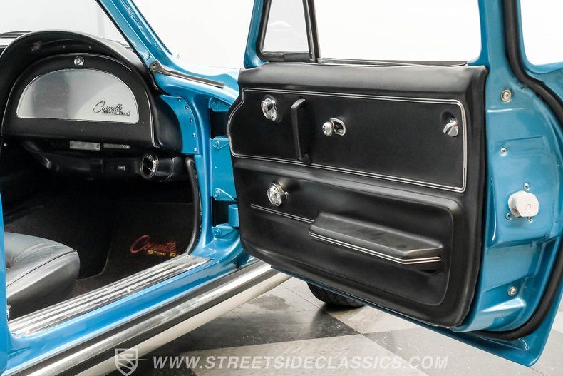 Inside, we find a fully restored black leather interior. A center console separates the dual bucket seats, while a three-spoke, power-assisted, wood-rimmed steering wheel sits just ahead of the C2 six-pod gauge cluster, featuring a 7,000-rpm tachometer and a 160-mph speedometer. A large analog clock sits high atop the center stack, and while the vertical radio is still where it belongs, this head unit has been upgraded to a modern AM/FM/AUX head, while a CD changer is hidden behind the passenger seat. Thanks to the coupe setup, this 'Vette also sports a sizeable cargo area, making road trips equal parts practical and fun.