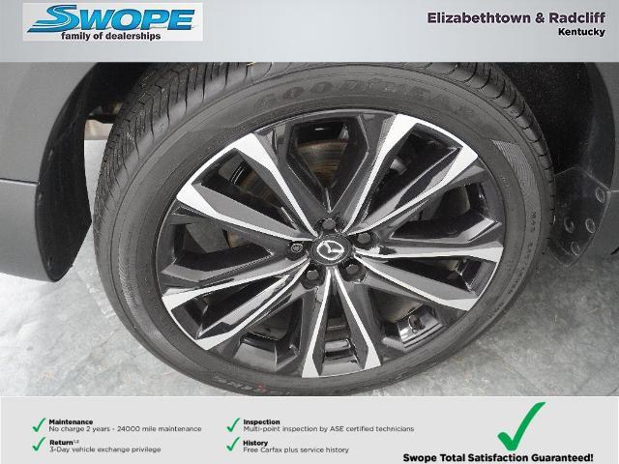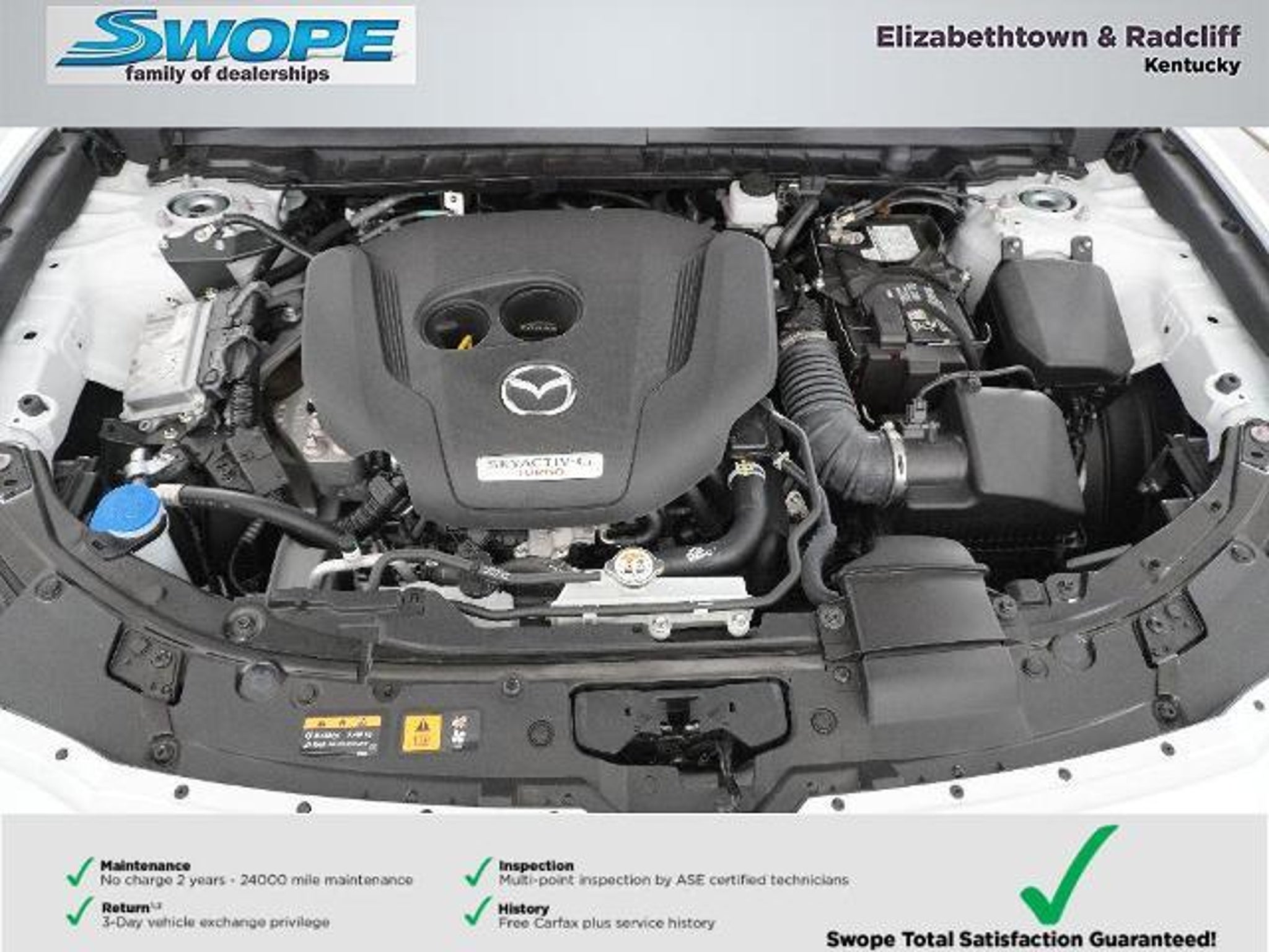 *Summary* Welcome to Bob Swope Fords exclusive listing of pre-owned vehicles. Call to speak to one of our certified Product Specialist to discover all this vehicle has to offer and see why we are a different dealership. Check out all our vehicles online at bobswopeford.com. *Vehicle Details* Discover exceptional value with this 2025 Mazda CX-50 2.5 Turbo Premium Package located in Elizabethtown KY. With only 3372 miles this AWD crossover delivers low-mileage confidence and a turbocharged 4-cylinder 2.5L gasoline engine that balances spirited performance with everyday efficiency. The Premium Package elevates comfort and convenience with leather seats automatic climate control and a premium BOSE stereo for an immersive audio experience on every drive. This Mazda CX-50 includes advanced safety and driver-assist features such as Lane Keep Assist enhancing highway stability and reducing driver fatigue. The automatic transmission ensures smooth shifts and confident handling in a variety of road conditions while the AWD system provides added traction for changing weather and terrain. Buy with assurance?this vehicle is a CARFAX 1-Owner unit and has been well maintained reflecting a clean ownership history. Priced to move it offers the best price in the area for a low-mileage turbocharged luxury-leaning compact SUV. Whether youre commuting road-tripping or running errands the Mazda CX-50 2.5 Turbo Premium Package blends performance comfort and advanced technology. Schedule a test drive in Elizabethtown KY today and experience the combination of power refinement and value that makes this Mazda CX-50 an outstanding choice for discerning drivers. *Equipment* Keep your hands warm all winter with a heated steering wheel in this model . The vehicle stays safely in its lane with Lane Keep Assist. Good News! This certified CARFAX 1-owner vehicle has only had one owner before you. Our dealership has already run the CARFAX report and it is clean. A clean CARFAX is a great asset for resale value in the future. The leather seats in this unit are a must for buyers looking for comfort durability and style. Youll never again be lost in a crowded city or a country region with the navigation system on this 2025 Mazda CX-50 . This Mazda CX-50 offers Apple CarPlay for seamless connectivity. This 2025 Mazda CX-50 s blind spot monitor enhances safety. Bluetooth technology is built into this Mazda CX-50 keeping your hands on the steering wheel and your focus on the road. The Mazda CX-50 offers Automatic Climate Control for personalized comfort. *Packages* Cargo Package: Cargo Net; Cargo Blocks. Trailer Hitch W/7-Pin Harness. Wind Chill Pearl Paint Charge. Silver Cross Bars. Black Lug Nuts & Black Wheel Locks. Carpet Cargo Mat. **Equipment listed is based on original vehicle build and subject to change. Please confirm the accuracy of the included equipment by calling the dealer prior to purchase.** *Additional Information* Complimentary 24-month/24000 mile maintenance package with every purchase. Proudly serving Elizabethtown and all surrounding areas for over 60 years. Call to schedule a test drive All prices plus tax title lic and dealer processing fee. Now that you found a vehicle you like lets schedule a time for you to take a pressure free test drive. Dealer Disclosure: Sales Tax Title License Fee Registration Fee Documentation fee of $499.00 and Finance Charges are additional to the advertised price.