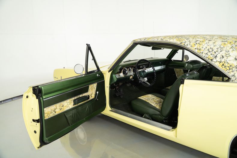 Rolling on 14-inch color-matched steel wheels with BF Goodrich Redline radials, this Barracuda for sale has presence from every angle. Complete with its original broadcast sheet, this example is 1 of just 937 Mod Top Barracudas built, and one of only 24 painted Sunfire Yellow with a Yellow Mod Top. A stunning and authentic piece of Mopar history!