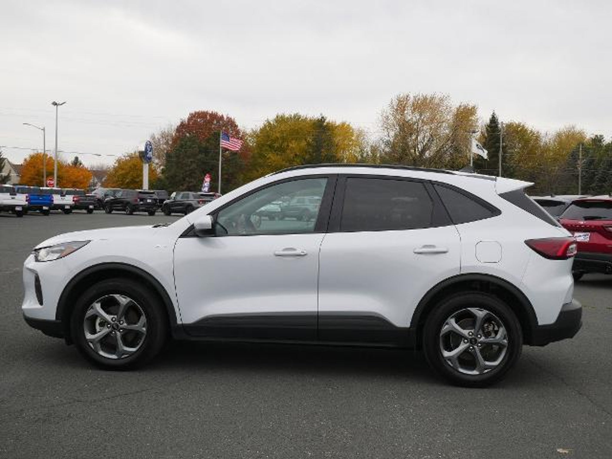 When practicality meets attitude, you get this 2025 Ford Escape ST-Line Select AWD --- the compact SUV that's equal parts weekday commuter and weekend explorer. Powered by the 2.0L EcoBoost® engine with Auto Start-Stop and an 8-speed automatic, it's got more zip than your morning espresso, and the sport-tuned suspension keeps it feeling planted in every curve. Finished in Space Silver Metallic with black mesh grille, red-stitched sport seats, and flat-bottom steering wheel, it looks ready to hit the gym even when it's just cruising to Target. Inside, you get the good life with heated front seats, dual-zone climate control, FordPass Connect, remote start, and SYNC 4 with SiriusXM 360L, because silence is for sedans. Safety's handled, too, with BLIS® with Cross-Traffic Alert, AdvanceTrac® with RSC®, and a full lineup of airbags --- so you can chase adventure without sweating the small stuff. Whether you're carving through snow, slush, or suburbia, this ST-Line Select proves that practical can still pack some serious personality!