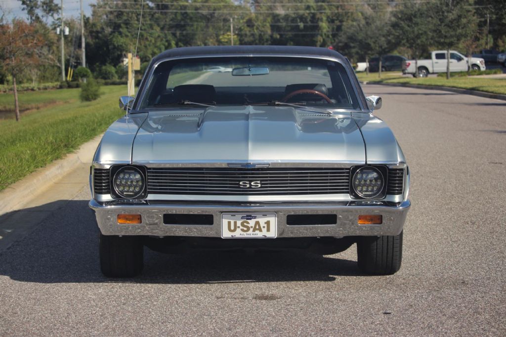1969 Chevrolet Nova SS Tribute This 1969 Chevrolet Nova is a sharp, well-presented muscle car finished in striking Cortez Silver over a clean black interior. With its period-correct 396 cubic inch Big Block V8 and 4-speed manual transmission, this Nova delivers the authentic late-60s muscle car experience powerful, raw, and fun to drive. The exterior shows beautifully in its newer Cortez Silver paint, complemented by SS badging, 14-inch SS wheels, and updated LED headlights that enhance visibility while maintaining a classic look. The body is straight, the chrome trim shines nicely, and the stance is just right for that timeless street-machine presence. Inside, the cabin features a clean black interior with a bench seat, upgraded sport steering wheel, and tilt column for driving comfort. A modern Kenwood stereo system and upgraded speakers have been added for improved sound quality without taking away from the cars vintage character. SS floor mats and tidy interior finishes round out the look. Under the hood sits a strong-running, period-correct 396 Big Block V8 paired with a 4-speed manual transmission. The car sounds fantastic thanks to its dual exhaust with headers and performs as good as it looks. An aluminum radiator helps keep things cool, while power front disc brakes provide confident stopping. This Nova has received extensive recent mechanical work to ensure it drives tight and smooth. The suspension has been gone through with new ball joints, shocks, tie rods, control arm bushings, and leaf springs, along with a fresh alignment. The result is a solid, responsive ride that feels dependable and road-ready. The floors are clean and solid, and the trunk includes a proper spare tire and jack. With only 51,590 miles showing on the odometer, this Nova presents as a well-cared-for example thats been thoughtfully updated and maintained. Highlights: * Period-correct 396 Big Block V8 engine * 4-speed manual transmission * Finished in newer Cortez Silver paint * Black bench seat interior with tilt steering and upgraded wheel * Kenwood stereo and upgraded speakers * Power front disc brakes * Aluminum radiator * Dual exhaust with headers * SS 14 wheels with SS floor mats * Clean floors and trunk with spare and jack * Updated LED headlights * Recent suspension work: ball joints, shocks, tie rods, control arm bushings, leaf springs, and alignment * 51,590 miles on the odometer This 1969 Chevrolet Nova is a true classic thats been tastefully restored, mechanically refreshed, and ready to enjoy. It looks great, sounds tough, and drives strong " an excellent example of American muscle done right. While we do our best to provide the highest quality muscle cars with an honest and reliable description and realize the importance of transparency when selling vehicles. That being said, we have not built, modified, changed or personally owned this vehicle. Whether this vehicle is consigned or owned by Past & Present Motor Cars we do not know the vehicles complete history since new. We want to be clear and try to answer any questions our customers might have prior to purchasing. Additionally, we not only welcome but we encourage 3rd party independent inspections. Please inquire prior to purchase to make sure the advertised vehicle has not already been sold. We list our vehicles on multiple websites and a vehicle can sell at any time. If a customer chooses to purchase sight unseen (many of our customers choose this option) the customer accepts the vehicle AS IS and WHERE IS and understands we cannot address concerns after purchase. For this reason, it's important all concerns are addressed prior to purchase. We make every effort to present accurate and reliable information, but use of this information is voluntary, and should only be deemed reliable after an independent review of its accuracy, completeness, and timeliness. It is the sole responsibility of the customer to verify the existence of options, accessories and the vehicle condition before time of sale. Financing is Available with low rates and Vehicle Shipping is available from our Showroom to your Garage. A Classic Car Warranty is Available for Purchase from a 3rd Party. Please speak to our Sales Associate or Company Representative for more information. Our team is working and available anytime by Phone or Text for your convenience at 407-559-7759. Thank you for your interest!