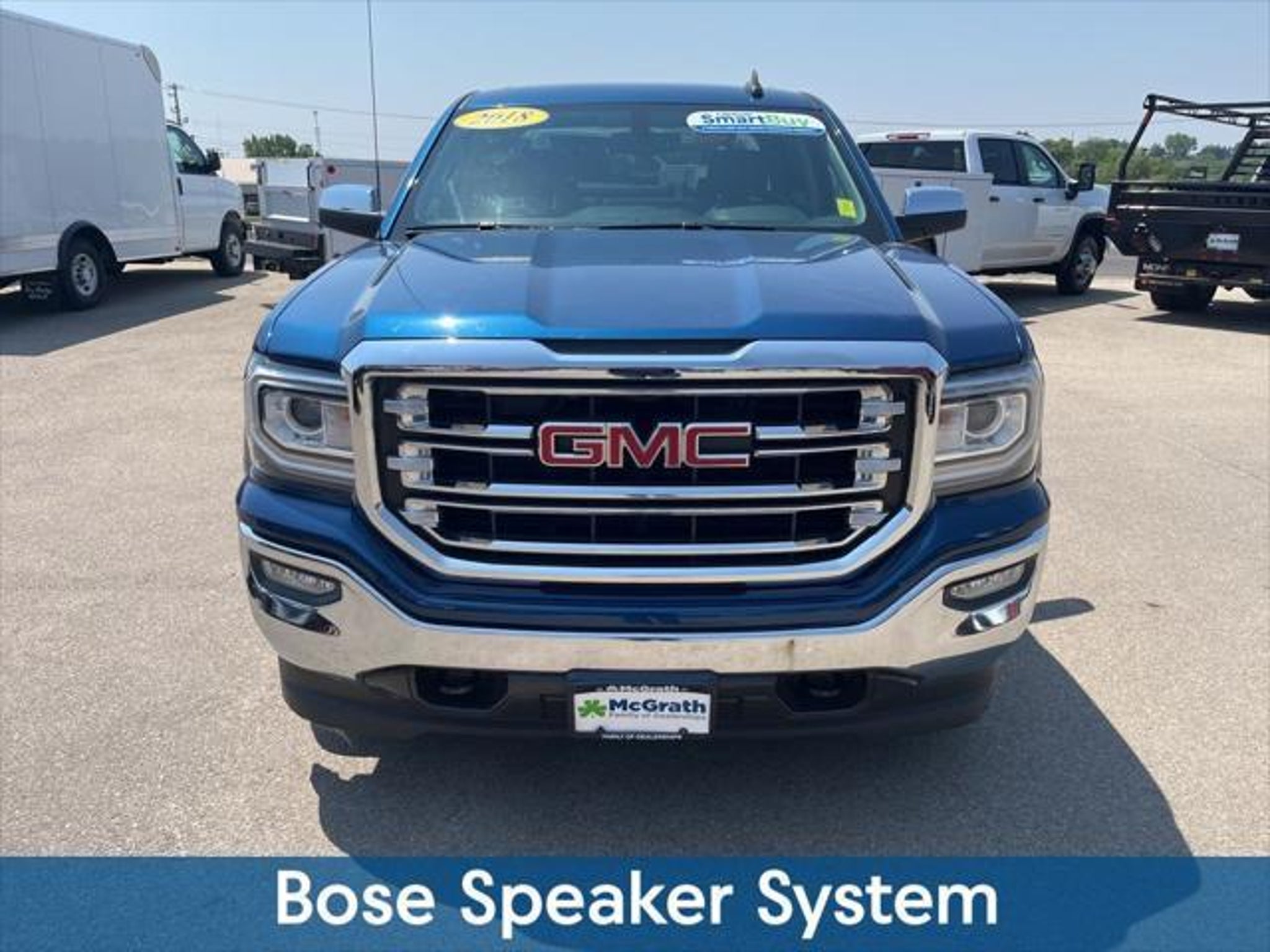 Discover the Commanding Presence of the 2018 GMC Sierra 1500 SLT This 2018 GMC Sierra 1500 SLT is a true workhorse boasting a powerful EcoTec3 5.3L V8 engine and 4-wheel drive capabilities that make it the perfect companion for any adventure. With a striking Blue exterior and a wealth of premium features this Sierra SLT is ready to elevate your driving experience. Highlights include: SmartBuy Certified - 3mo/3k Mile Warranty SLT PREMIUM PACKAGE with Bose premium audio system and 20 polished aluminum wheels Leather-appointed heated front bucket seats with 10-way power adjustments 8 diagonal color touch screen navigation with GMC Infotainment System The Sierra SLTs impressive list of features continues with a host of convenience and technology upgrades. Enjoy the convenience of wireless charging a power-folding and adjustable heated outside mirrors and the peace of mind of a Theft Deterrent System. Stay connected with OnStar and GMC Connected Services and keep your hands on the wheel with steering wheel-mounted audio controls. This Sierra SLT also boasts a suite of advanced safety features including ABS brakes electronic stability control and a rear-view camera ensuring you and your passengers travel with confidence. The 4-wheel disc brakes and heavy-duty suspension provide the responsive handling and control you demand while the 2-speed active electronic transfer case and locking rear differential give you the capability to conquer any terrain. Whether youre tackling tough jobs or seeking a premium driving experience this 2018 GMC Sierra 1500 SLT is the perfect choice. With its powerful engine impressive technology and exceptional versatility this Sierra is ready to elevate your driving experience to new heights. Prices may change at any time and are subject to availability and prior sale. Taxes title license fees and a $180 documentation fee are not included. Payments shown are estimates; actual terms vary by buyer and credit approval. Dealer is not responsible for errors in pricing or vehicle details information is believed accurate but not guaranteed. Photos are for illustration only confirm details with the dealer. Fuel economy ratings and driving range figures are based on EPA estimates for new vehicles and actual mileage and range may vary. By submitting your phone number you consent to occasional SMS or calls about our products and promotions; standard messaging rates apply. See dealer for details.