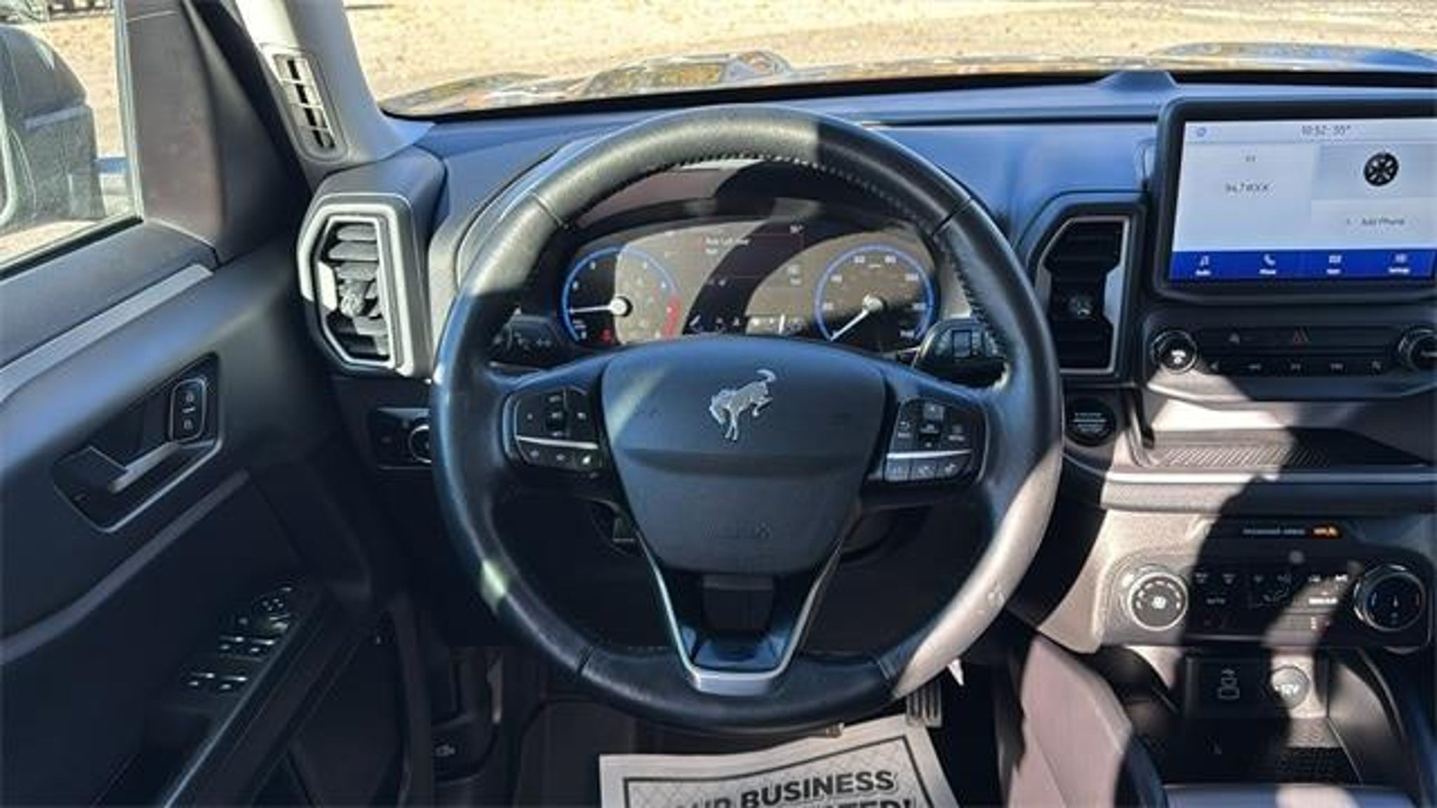 2023 Ford Bronco Sport Big Bend in Alto Blue Metallic Tinted Clearcoat vehicle highlights include...., Ford Blue Certified, Convenience Package, 4D Sport Utility, 1.5L EcoBoost, 8-Speed Automatic, 4WD, Ebony Cloth, Auto High-beam Headlights, Automatic temperature control, Front Driver & Passenger Seatback Zipper Pockets, Heated Front Bucket Seats, Illuminated entry, Intelligent Access (Lock/Unlock), Leather-Wrapped Steering Wheel, LED Fog Lamps, Rear Parking Sensors, Remote keyless entry, SYNC 3 Communications & Entertainment System, Universal Garage Door Opener (UGDO), Wheels: 17 Carbonized Gray-Painted Aluminum, Wireless Charging Pad. 25/28 City/Highway MPG