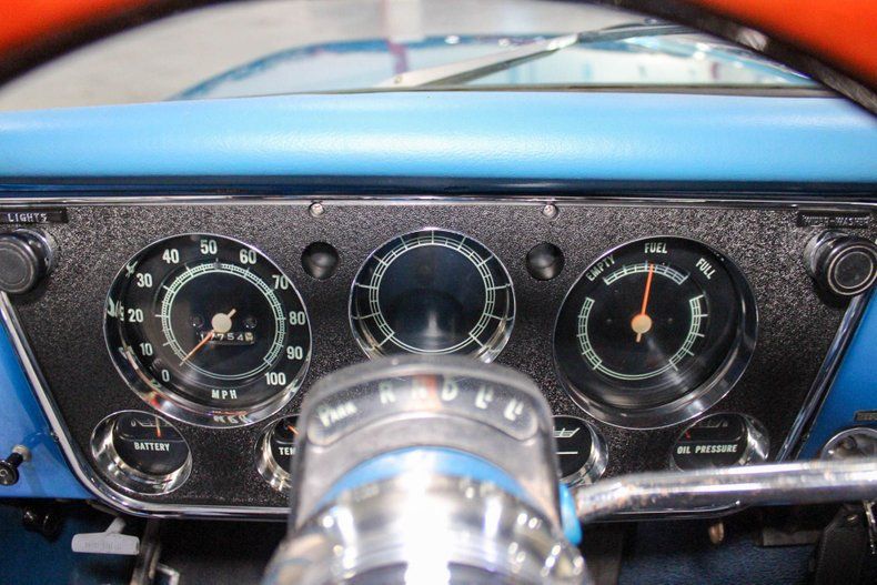 This 1971 Chevrolet C10 is a beautifully finished example of Chevrolet's iconic pickup, blending classic styling with tasteful updates and modern reliability. The truck is presented in a gorgeous metallic light blue with a contrasting white roof that perfectly captures the vintage look of the early '70s. The paint shines with depth and luster, complemented by new chrome bumpers and polished trim throughout. A spray-in bed liner adds practicality and protection for everyday use, while a set of Ridler five-spoke wheels wrapped in new tires give the truck a confident stance and a touch of modern flair.