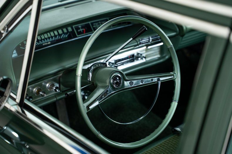 This 1963 Chevrolet Impala captures the best of early 1960s American style and craftsmanship. Under the hood sits a smooth-running 283 C. I. V8 paired with a 2-speed Powerglide transmission, providing effortless cruising power that defined the era. The Ivy Green Poly exterior pairs beautifully with the green cloth interior, giving this Chevy Impala a classic and elegant look from every angle.