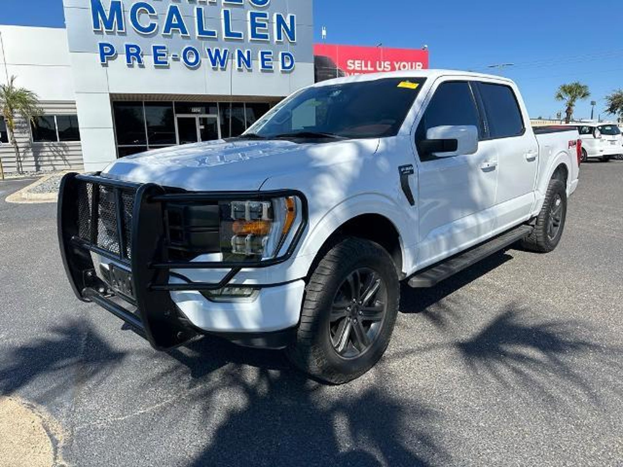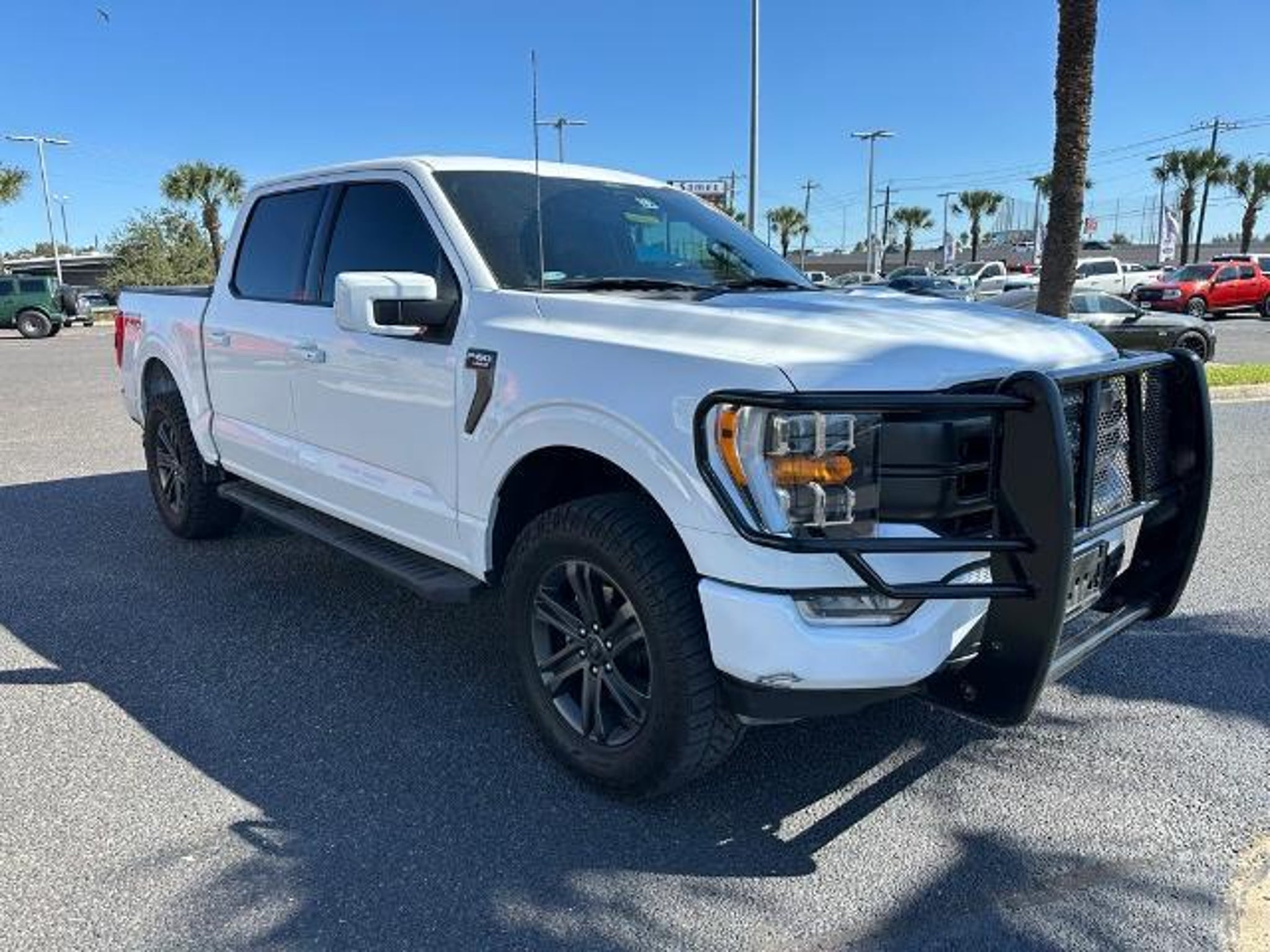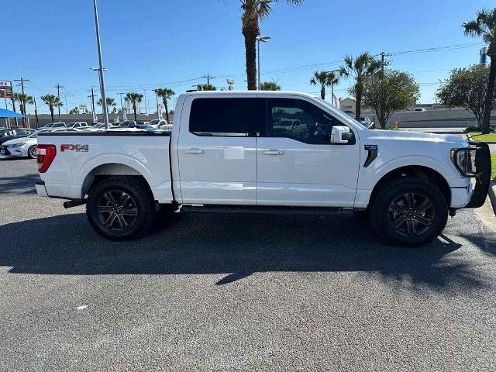 This 2022 Ford F-150 Lariat in Oxford White comes with the following features: 3.5L V6 EcoBoost 10-Speed Automatic 4WD Bed Utility Package (BoxLink, LED Box Lighting, Power Tailgate, and Tailgate Step w/Tailgate Work Surface), Equipment Group 501A Mid (Onboard 400W Outlet, Radio: B&O Sound System by Bang & Olufsen, and Universal Garage Door Opener), FX4 Off-Road Package, Lariat Sport Appearance Package (Accent-Color Angular Step Bars, Body-Color Front & Rear Bumpers, Box Side Decals, Chrome Single-Tip Exhaust, Dark 2-Bar & 1 Minor Bar Style Grille, and Wheels: 18 6-Spoke Machined Aluminum), Trailer Tow Package (Class IV Trailer Hitch Receiver, Integrated Trailer Brake Controller, and Pro Trailer Backup Assist), Sames Certified Certified, 4WD, 18 Machined-Aluminum Wheels, 4-Wheel Disc Brakes, 7 Speakers, ABS brakes, Adjustable pedals, Air Conditioning, Alloy wheels, AM/FM radio: SiriusXM with 360L, Auto High-beam Headlights, Auto Start-Stop Removal, Auto-dimming door mirrors, Auto-dimming Rear-View mirror, Automatic temperature control, Brake assist, Bumpers: chrome, Compass, Connected Navigation & SiriusXM w/360L Removal, Delay-off headlights, Driver door bin, Driver vanity mirror, Dual front impact airbags, Dual front side impact airbags, Electronic Stability Control, Emergency communication system: SYNC 4 911 Assist, Extended Range 36 Gallon Fuel Tank, Exterior Parking Camera Rear, Front anti-roll bar, Front Center Armrest w/Storage, Front dual zone A/C, Front fog lights, Front reading lights, Front wheel independent suspension, Fully automatic headlights, Heated door mirrors, Heated front seats, Illuminated entry, Interior Work Surface, Leather-Trimmed 40/20/40 Front Seat, LED Sideview Mirror Spotlights, Low tire pressure warning, Memory seat, Occupant sensing airbag, Outside temperature display, Overhead airbag, Overhead console, Panic alarm, Passenger door bin, Passenger vanity mirror, Pedal memory, Power door mirrors, Power driver seat, Power passenger seat, Power steering, Power windows, Radio data system, Radio: AM/FM SiriusXM w/360L, Rear reading lights, Rear seat center armrest, Rear step bumper, Rear window defroster, Remote keyless entry, Security system, Speed control, Speed-sensing steering, Split folding rear seat, Steering wheel mounted audio controls, SYNC 4 w/Enhanced Voice Recognition, Tachometer, Telescoping steering wheel, Tilt steering wheel, Traction control, Tray Style Floor Liner, Trip computer, Turn signal indicator mirrors, Variably intermittent wipers, Ventilated front seats, V