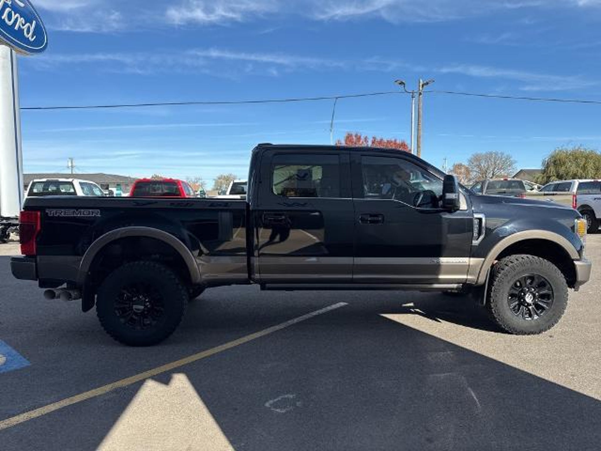 Black 4WD Power Stroke 6.7L V8 DI 32V OHV Turbodiesel 10-Speed Automatic 4WD, 10 Speakers, 110V/400W Outlet, 4-Wheel Disc Brakes, ABS brakes, Adjustable pedals, Air Conditioning, Alloy wheels, AM/FM radio: SiriusXM, Auto High-beam Headlights, Auto tilt-away steering wheel, Auto-dimming Rear-View mirror, Automatic temperature control, Brake assist, Compass, Delay-off headlights, Driver door bin, Driver vanity mirror, Dual front impact airbags, Dual front side impact airbags, Electronic Stability Control, Emergency communication system: SYNC 3 911 Assist, Exterior Parking Camera Rear, Flow-Through Console, Front anti-roll bar, Front Bucket Seats, Front Center Armrest, Front dual zone A/C, Front fog lights, Front reading lights, Fully automatic headlights, Garage door transmitter, GVWR: 10,000 lb Payload Package, Heated door mirrors, Heated front seats, Heated Rear Seats, Heated steering wheel, High Capacity Trailer Tow Package, Illuminated entry, Illuminated running boards, King Ranch Ultimate Package, Leather steering wheel, Low tire pressure warning, Memory seat, Multi-Contour Seats, Navigation System, Order Code 700A, Outside temperature display, Overhead airbag, Overhead console, Panic alarm, Passenger door bin, Passenger vanity mirror, Pedal memory, Power door mirrors, Power driver seat, Power passenger seat, Power steering, Power windows, Power-Deployable Running Boards, PowerScope Trailer Tow Mirrors w/Heat, Pro Trailer Backup Assist - High Capacity, Quad Beam LED Headlamps & LED Taillamps, Radio data system, Radio: B&O System by Bang & Olufsen, Rain sensing wipers, Rear Parking Sensors, Rear reading lights, Rear seat center armrest, Rear step bumper, Rear window defroster, Remote keyless entry, Security system, SiriusXM Radio, Speed control, Split folding rear seat, Steering wheel memory, Steering wheel mounted A/C controls, Steering wheel mounted audio controls, SYNC 3 Communications & Entertainment System, Tachometer, Tailgate Step & Handle, Telescoping steering wheel, Tilt steering wheel, Traction control, Trip computer, Turn signal indicator mirrors, Twin Panel Power Moonroof, Ultimate Trailer Tow Camera System, Unique King Ranch Leather 40/Console/40 Front Seats, Variably intermittent wipers, Ventilated front seats, Wheels: 18 Bright Machined Cast Aluminum, 4WD. Come to www.windyford.com To see our Specials!! Call us at 580-327-3200 For help with any of our departments. We also know we need to take care of community and give back and help our local community grow and be successful in all are