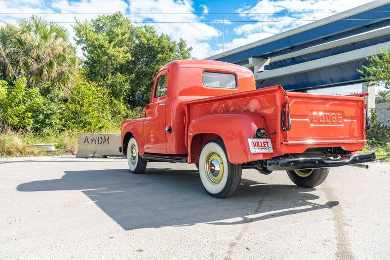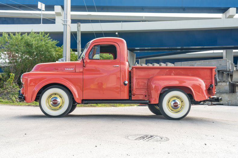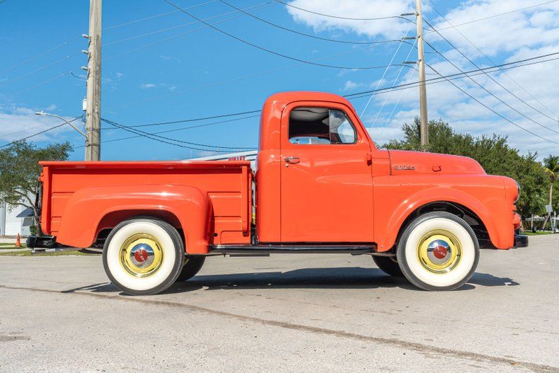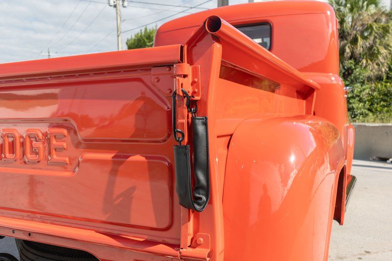 Description: This 1953 Dodge B-4-B was in the collection of former Wal-Mart president and COO Jack Shewmaker. The truck is a half-ton, short-bed pickup with three on the tree, and it is powered by a 218ci flathead inline-six. Finished in coral over black upholstery, it has 15 steel wheels, a wood plank bed floor, and a six-volt electrical system.