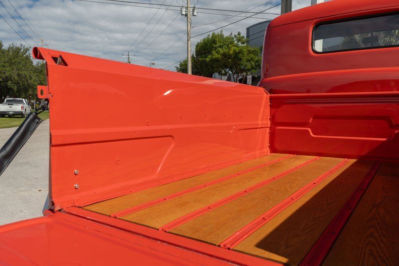 Key Facts: 25k Miles Shown 218ci Flathead Inline-Six Column-Shifted Three-Speed Manual Coral Paint over Black Upholstery 15" Steel Wheels Wood-Plank Bed Floor