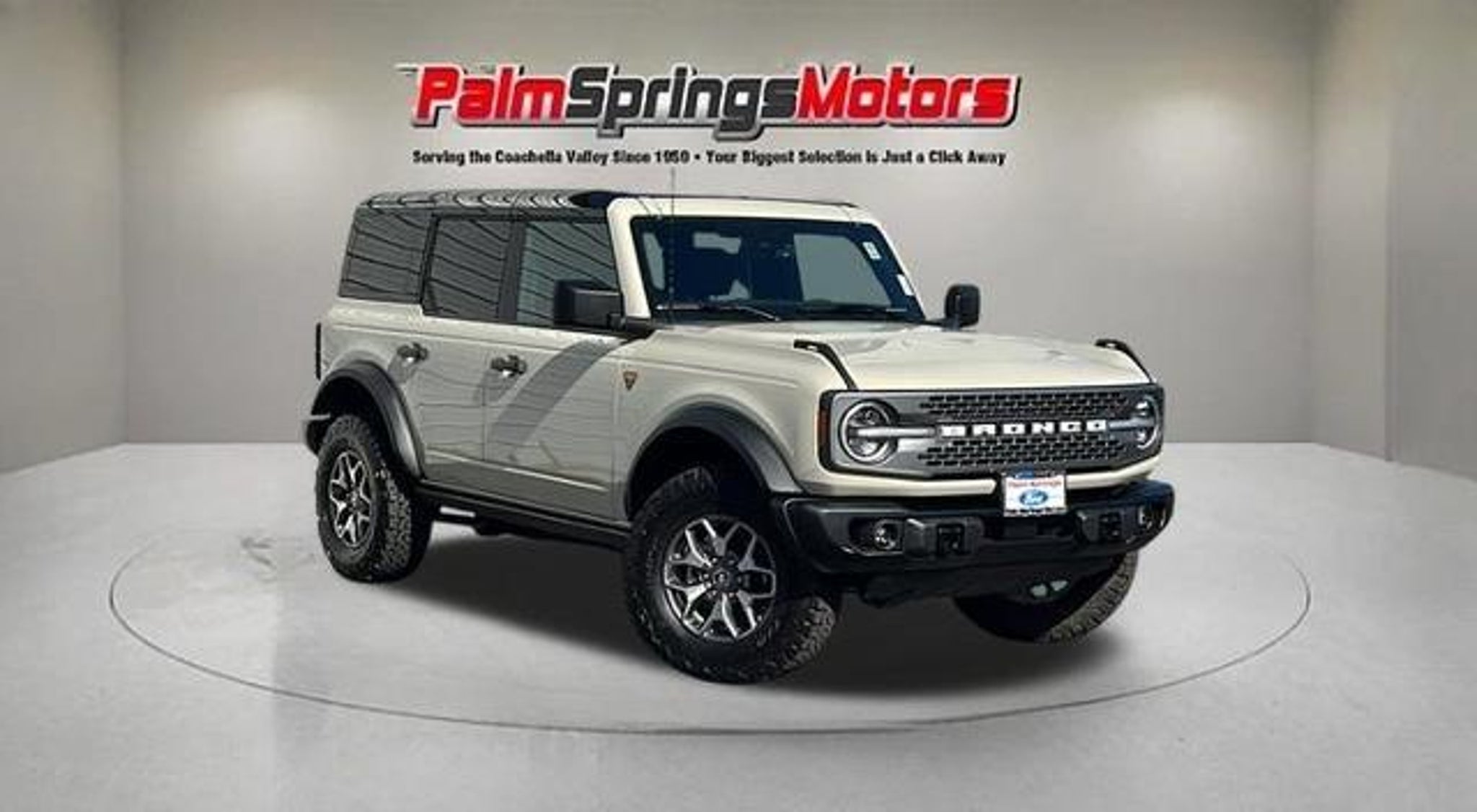 The Biggest Selection Only Minutes Away!!! CARFAX One-Owner. Certified. Ford Gold Certified Details: * Transferable Warranty * Powertrain Limited Warranty: 84 Month/100,000 Mile (whichever comes first) from original in-service date * and 22,000 FordPass Rewards Points to use toward first two maintenance visits * Limited Warranty: 12 Month/12,000 Mile (whichever comes first) after new car warranty expires or from certified purchase date * 172 Point Inspection * Vehicle History * Roadside Assistance * Warranty Deductible: $100 Bronco Badlands, 4D Sport Utility, 2.7L EcoBoost V6, 10-Speed Automatic, 4WD, Desert Sand, Black Onyx w/Heated Leather-Trimmed/Vinyl Bucket Seats, 2-Door Intelligent Access w/Lock/Unlock, 4-Wheel Disc Brakes, 4.7 Axle Ratio, 7 Speakers, ABS brakes, Air Conditioning, AM/FM radio: SiriusXM with 360L, AM/FM Stereo, Ambient Footwell Lighting, Auto High-Beam Headlamps, Auto High-beam Headlights, Auto-dimming Rear-View mirror, BLIS Blind Spot Information System, Brake assist, Connected Navigation, Delay-off headlights, Dr & Pass Illuminated Sliding Visor Vanity Mirrors, Dual Smart Charging USB Ports, Dual-Zone Electronic Automatic Temperature Control, Electronic Stability Control, Emergency communication system: 911 Assist, Equipment Group 332A Mid Package, Exterior Parking Camera Rear, Front Bucket Seats, Front Center Armrest, Front fog lights, Front Row Heated Seats, Fully automatic headlights, Hard Top Sound Deadening Headliner, Heated door mirrors, Heated front seats, Heated steering wheel, Illuminated entry, Lane-Keeping System, Leather Shift Knob, Marine Grade Vinyl Heated Bucket Seats, Passenger door bin, Power door mirrors, Power Outlet - Back Side of Center Floor Console, Power steering, Power windows, Pre-Collision Assist w/Automatic Emergency Braking, Radio data system, Rear Parking Sensors, Rear-View Camera, Rear-Window Defroster & Washer, Remote keyless entry, Security system, Shadow Black Painted Hard Top, SiriusXM w/360L, Split folding rear seat, Steering wheel mounted audio controls, SYNC 4, Telescoping steering wheel, Tilt steering wheel, Traction control, Variably intermittent wipers, Wheels: 17 Carbonized Gray-Painted Aluminum. 2025 Ford Bronco Badlands