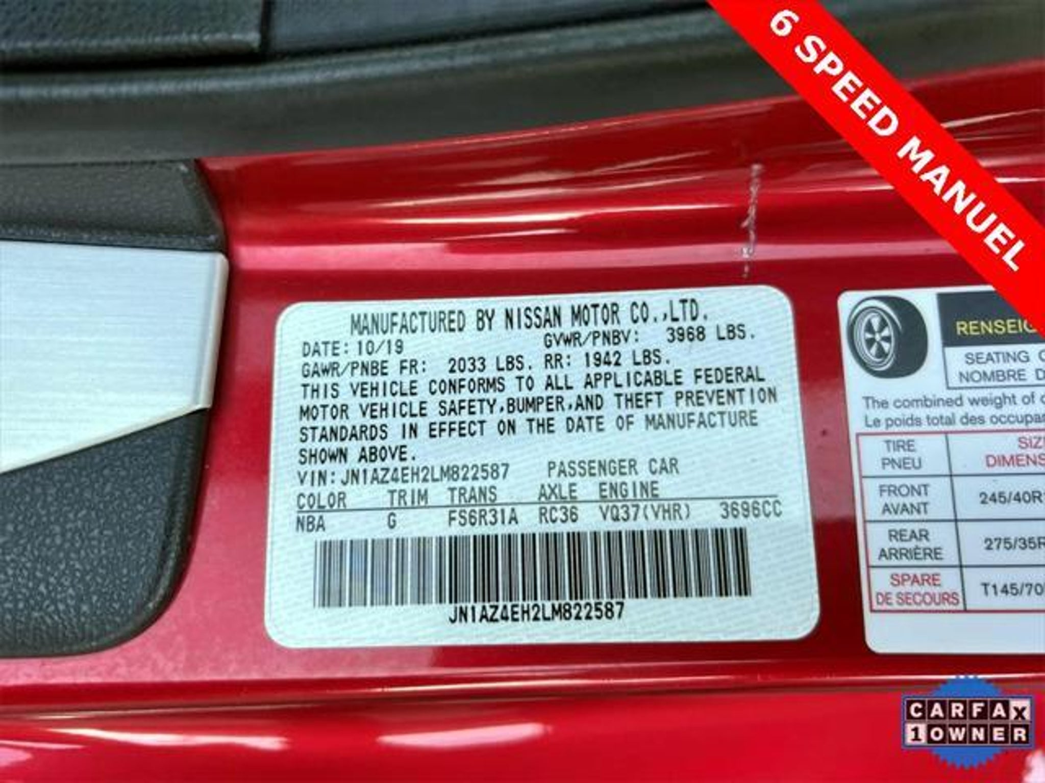CLEAN VEHICLE HISTORY...NO ACCIDENTS, ONE OWNER, 4-Wheel Disc Brakes, 8 Speakers, ABS brakes, Air Conditioning, AM/FM radio, Anti-whiplash front head restraints, Auto-dimming Rear-View mirror, Automatic temperature control, Bumpers: body-color, Carpeted Floor Mat, Carpeted Trunk Mat, CD player, Cruise Control, Delay-off headlights,Auto-Leveling Headlights,Dynamic Bending Light (DBL), Driver door bin, Driver vanity mirror, Dual front impact airbags, Dual front side impact airbags, First Aid Kit, Forward Collision Avoidance Assist, Four wheel independent suspension, Front anti-roll bar, Front reading lights, Fully automatic headlights, Heated Side Mirrors, High intensity discharge headlights: Bi-Xenon, Illuminated entry, Illuminated Kick Plates, Lane Keeping Assist & Driver Attention Warning, Leather-Wrapped Steering Wheel and Shift Knob, Low tire pressure warning, Occupant sensing airbag, Outside temperature display, Overhead airbag, Panic alarm, Passenger vanity mirror, Power door mirrors, Power steering, Power windows, Proximity Key with Push Button Start; Immobilizer, Radio data system, Radio: 2 DIN AM/FM/CD Bose Audio System, Rear anti-roll bar, Rear window defroster, Remote keyless entry, Security system, Special Paint - Passion Red, Speed-sensing steering, Spoiler, Steering wheel mounted audio controls, SynchroRev Match, Tachometer, Tilt steering wheel, Traction control, Trip computer, Variably intermittent wipers, Voltmeter, Wheels: 19 x 9 Fr 19 x 10 Rr RAYS Forged Alloy. RWD 6-Speed Manual 3.7L V6 17/26 City/Highway MPG Passion Red Tricoat 2020 Nissan 370Z Sport Subject to the primary lender's approval. All prices exclude tax, title, dealer fee of $695, tags, license & DMV. Vehicles are sold cosmetically as is. Not all cars are certified where as many do pass the certification process, the customer does have the right to add an optional extended service agreement.