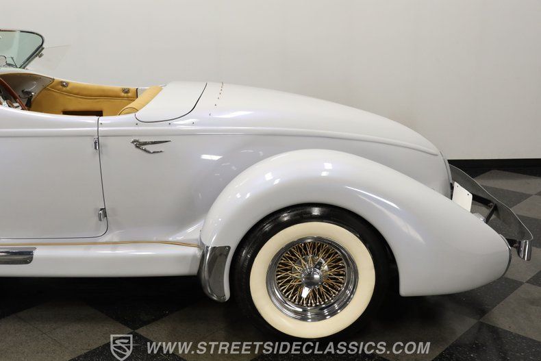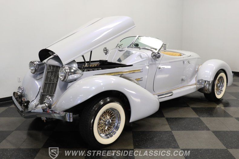 Outfitted for spirited driving and guaranteed to turn heads, this 1979 Auburn Speedster Glen Pray 866 Replica cruises on a set of 15" chrome faux-gold wheels that add the perfect touch to its vintage appearance. It would be a great fit for the collector searching for a ride that combines the style of yesteryear with modern components firmly rooted in the present. Call today! We can assist you with getting an Extended Vehicle Service Plan from Freedom Warranty, which provides comprehensive coverage that can save thousands of dollars on unexpected repairs. Inquire for more details and pricing!