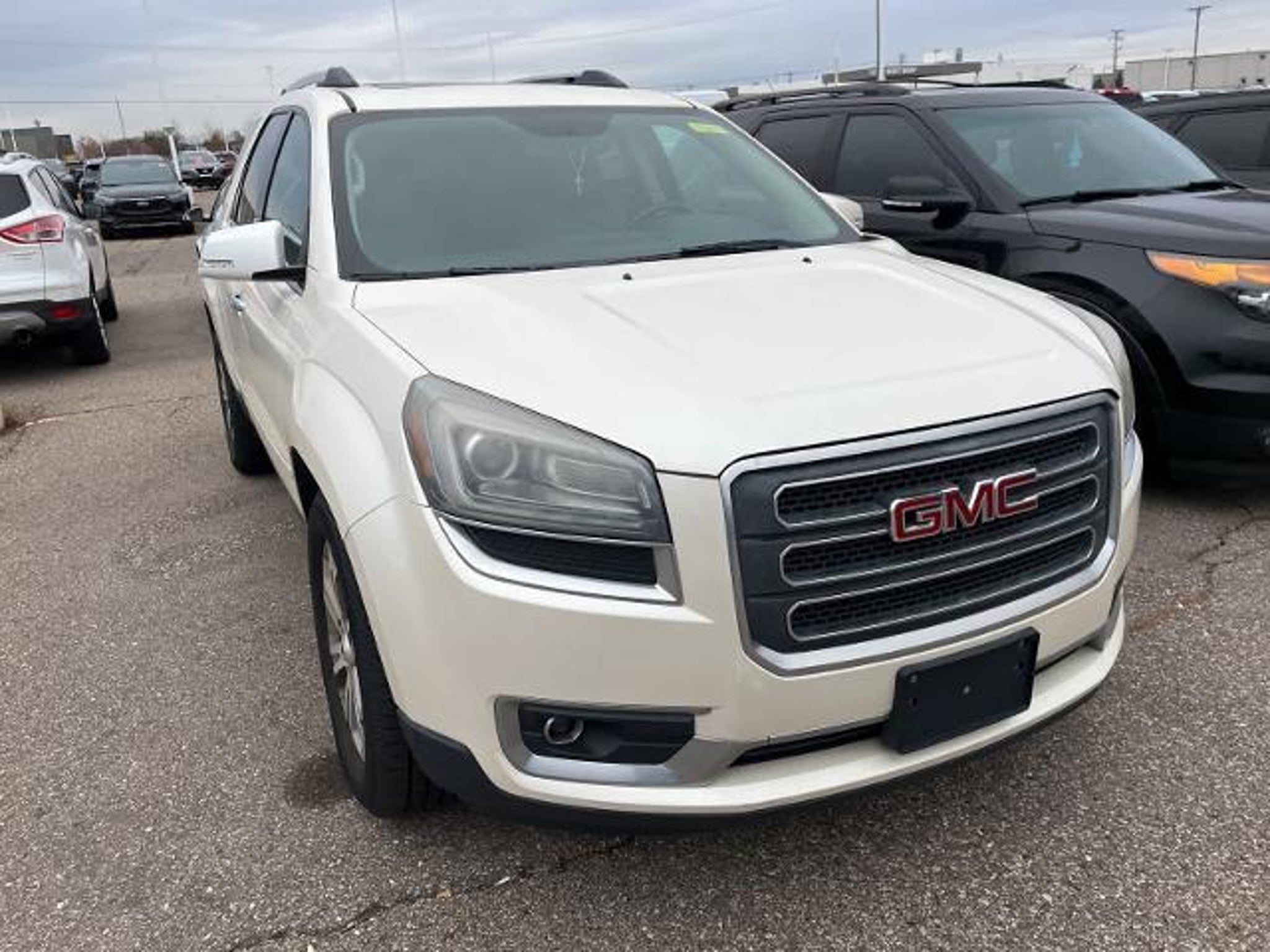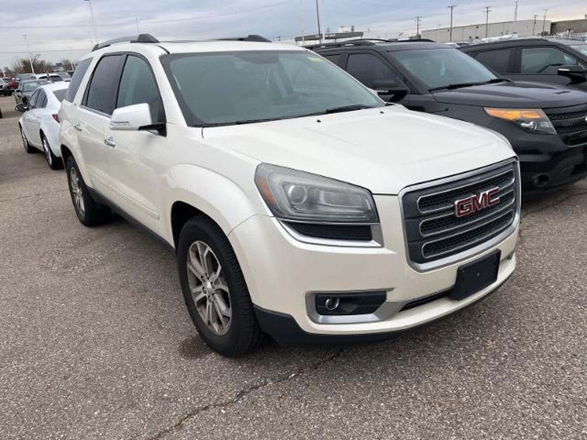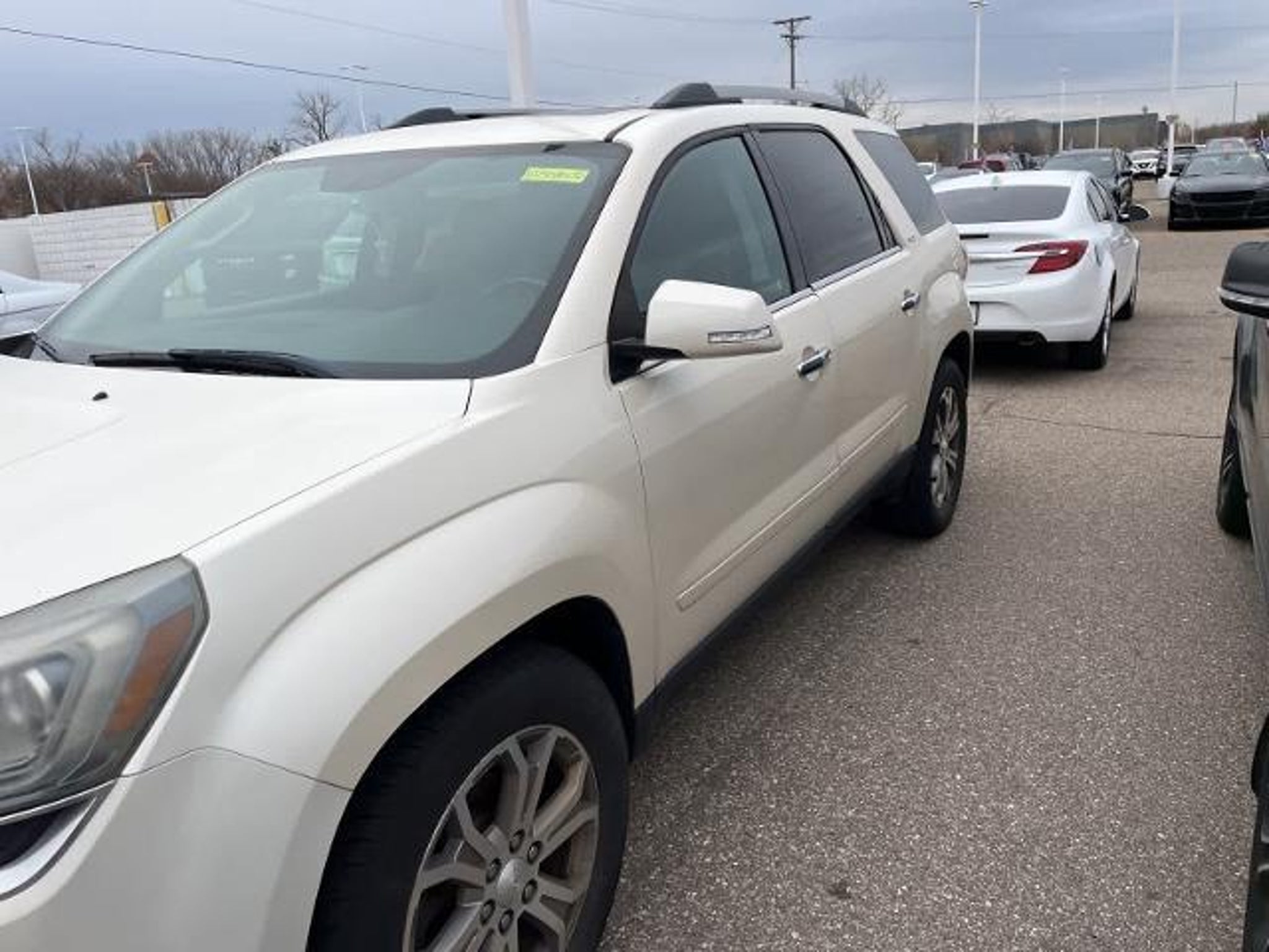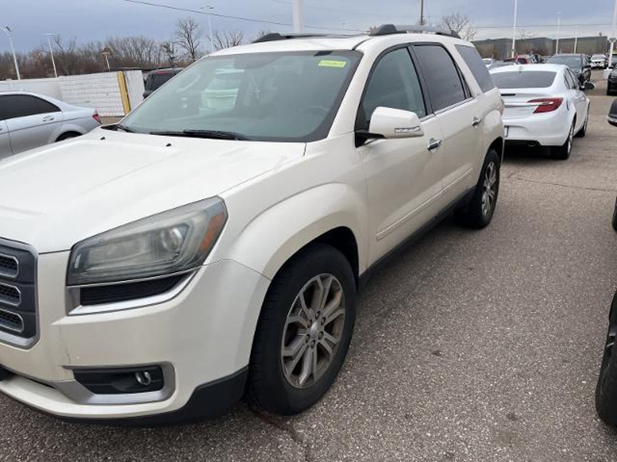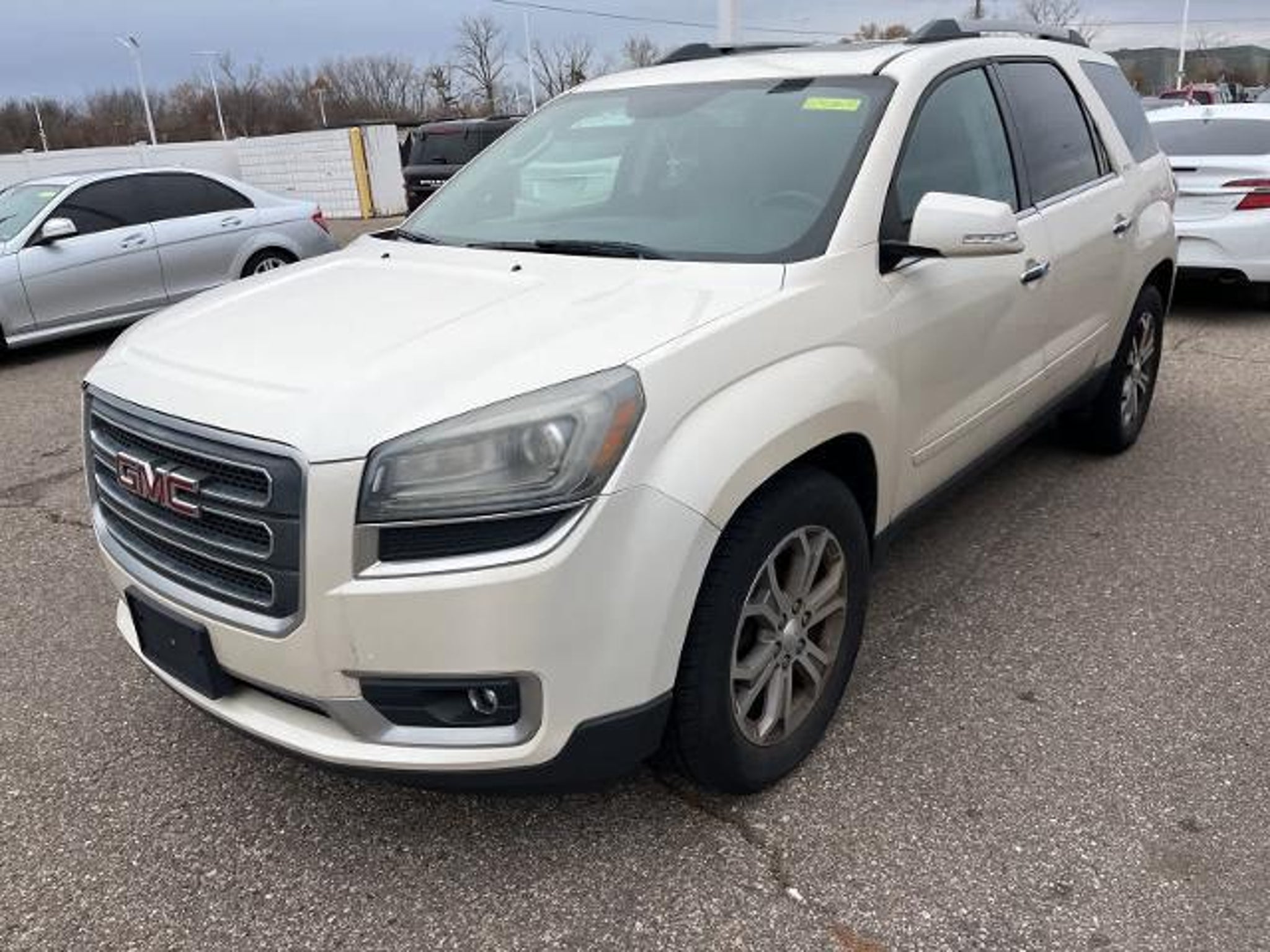 White Diamond Tricoat 16/23 City/Highway MPG 2013 GMC Acadia SLT-1 AWD 6-Speed Automatic 3.6L V6 SIDI AWD, Dark Cashmere Leather.WHOLESALE PRICING FOR EVERYONE! Fully Safety Inspected Fresh Oil & Filter Many vehicles qualify for extended service contracts for added peace of mind Hurry???our inventory moves fast! Visit or call today before it???s gone. Price does not include licensing costs, registration fees, taxes, $999 Comprehensive Protection, and a $280 dealer doc fee, to be paid by the consumer.Odometer is 18253 miles below market average!Awards: * 2013 IIHS Top Safety PickReviews: * If you need room for eight, a massive cargo bay or some combination of both, but you don???t want a fuel-thirsty full-size SUV or dowdy minivan, check out the 2013 GMC Acadia. Source: KBB.com * Compliant ride; seating for up to eight passengers; massive cargo area. Source: Edmunds