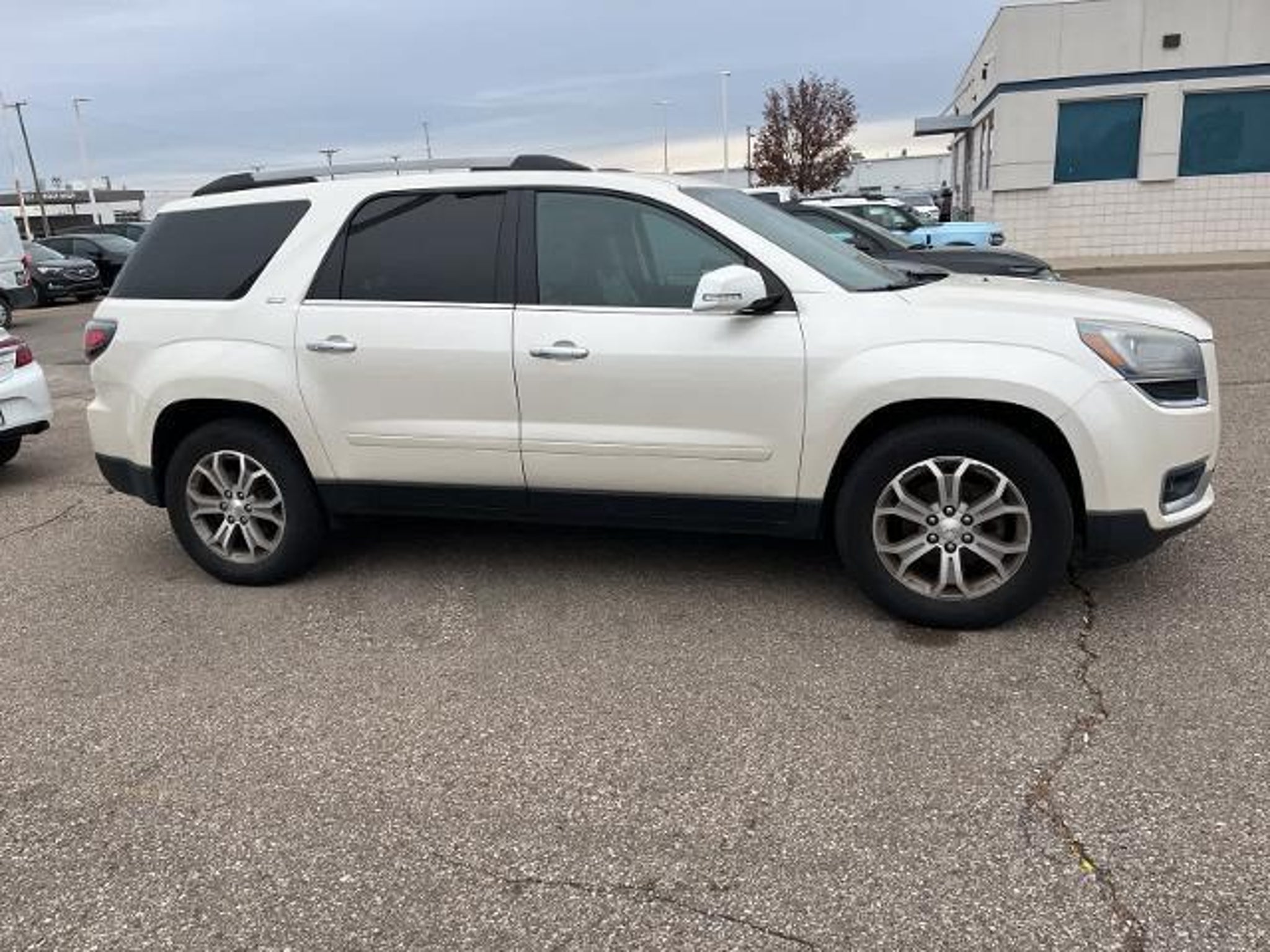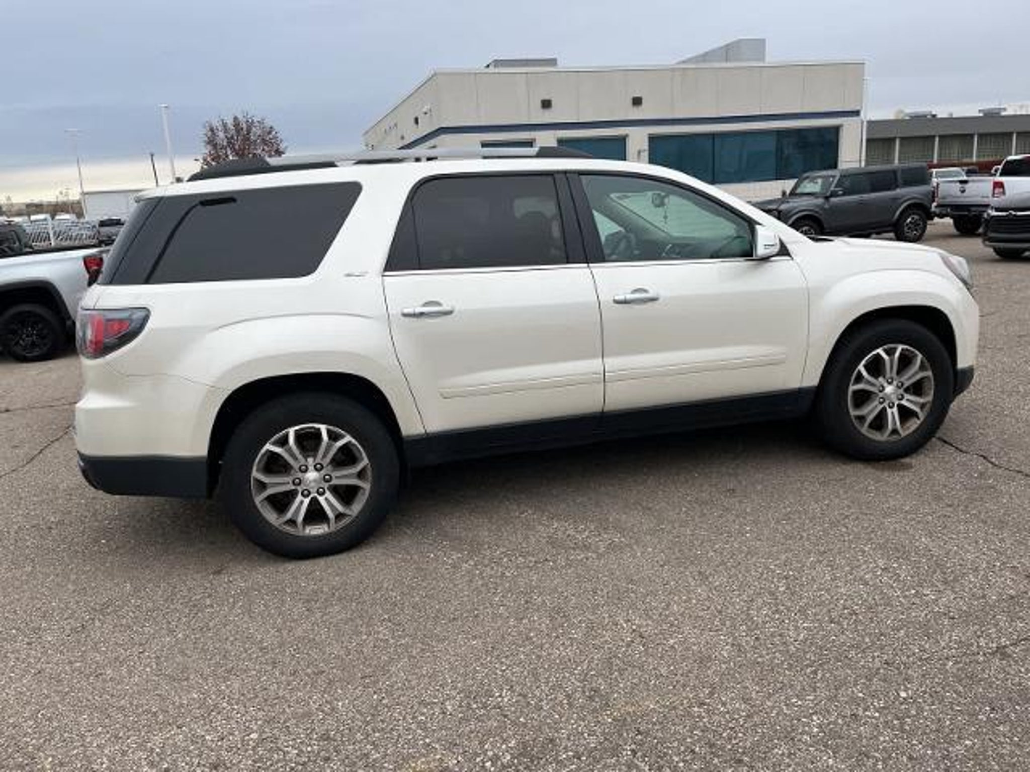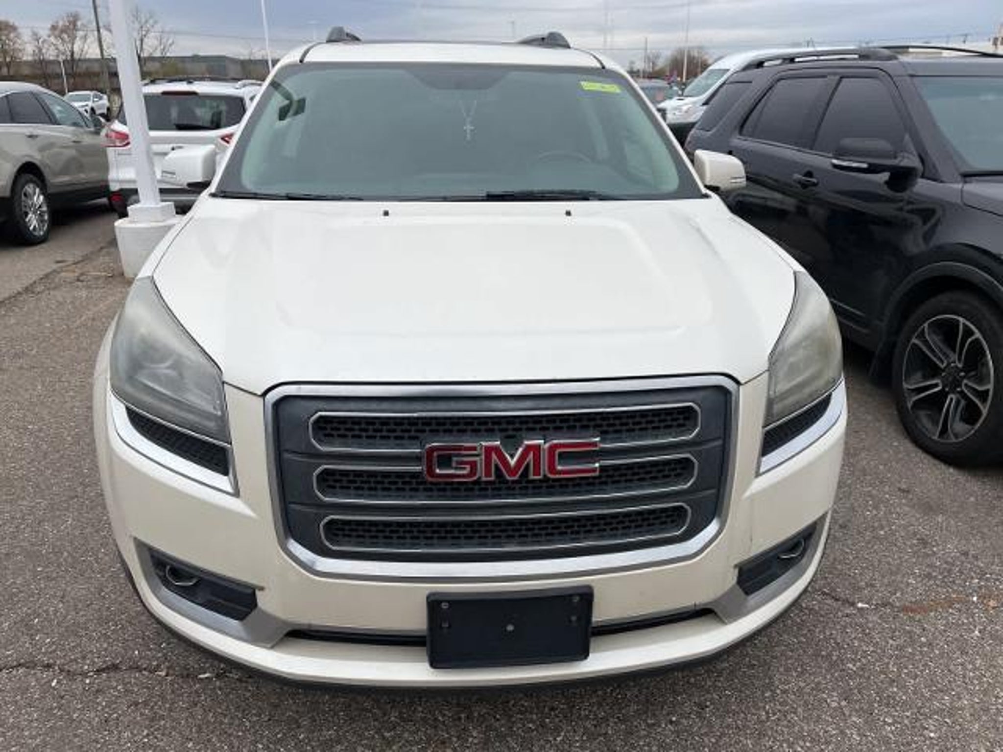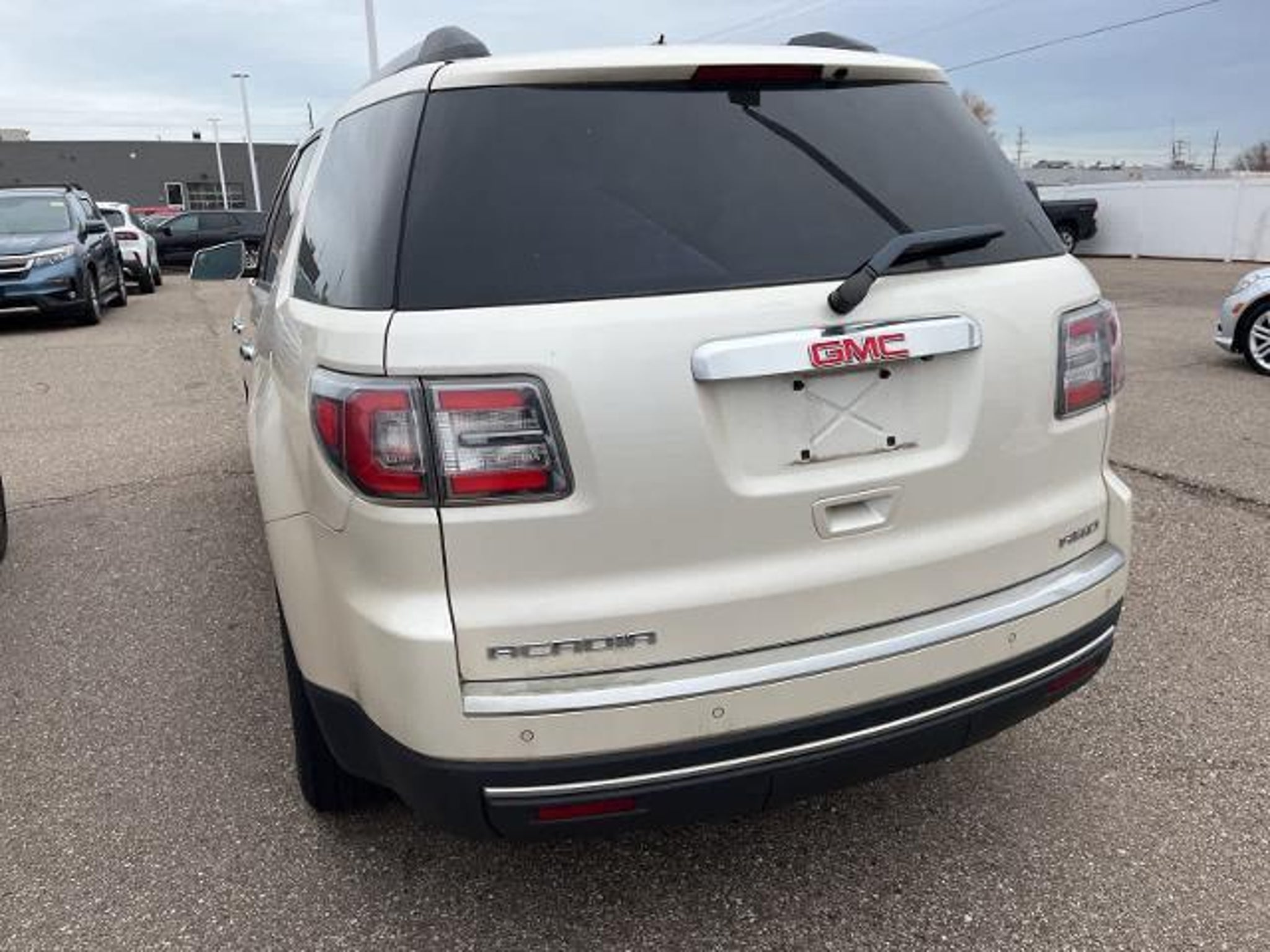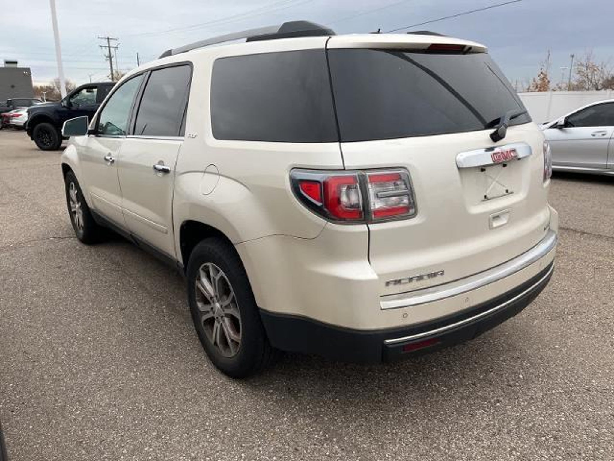 White Diamond Tricoat 16/23 City/Highway MPG 2013 GMC Acadia SLT-1 AWD 6-Speed Automatic 3.6L V6 SIDI AWD, Dark Cashmere Leather.WHOLESALE PRICING FOR EVERYONE! Fully Safety Inspected Fresh Oil & Filter Many vehicles qualify for extended service contracts for added peace of mind Hurry???our inventory moves fast! Visit or call today before it???s gone. Price does not include licensing costs, registration fees, taxes, $999 Comprehensive Protection, and a $280 dealer doc fee, to be paid by the consumer.Odometer is 18253 miles below market average!Awards: * 2013 IIHS Top Safety PickReviews: * If you need room for eight, a massive cargo bay or some combination of both, but you don???t want a fuel-thirsty full-size SUV or dowdy minivan, check out the 2013 GMC Acadia. Source: KBB.com * Compliant ride; seating for up to eight passengers; massive cargo area. Source: Edmunds