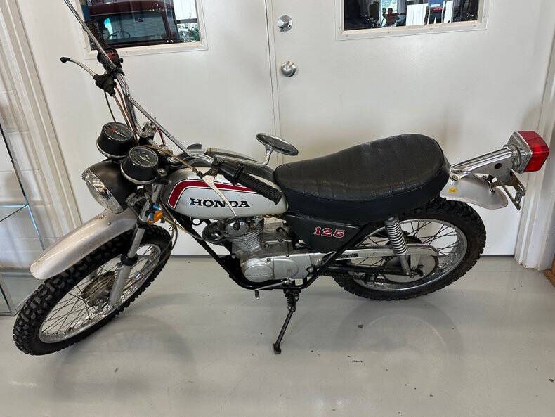 1973 HONDA SL125 - CLASSIC TRAIL STYLE, Street Dreams Texas is proud to offer this vintage 1973 Honda SL125, a lightweight and reliable classic that captures the golden age of Honda's trail bike lineup. Manufactured in September of 1972 and carrying VIN SL125-1214768, this machine stands as a great example of Honda's engineering simplicity and rugged charm. HIGHLIGHTS: Model Year: 1973 Manufacture Date: 9/72 VIN: SL125-1214768 Color: Special silver Metallic -only color availble in 1973 Engine: 122cc four-stroke, air-cooled single-cylinder Transmission: 5-speed manual Frame: Lightweight, reinforced for both street and trail use Suspension: Telescopic fork front, twin-shock rear Brakes: Drum front and rear WHY IT'S SPECIAL: The Honda SL125 was part of Honda's early '70s push to create versatile machines that could handle both light off-road adventures and everyday street use. With its durable engine, straightforward design, and nimble feel, these bikes became favorites for riders who wanted reliability with just enough power for fun. Today, surviving examples like this 1973 Honda SL125 in The only color available for1973 was Special Silver Metallic and are becoming harder to find, especially with their original character intact. Whether you're a collector, restorer, or simply looking for a cool vintage Honda to enjoy, this SL125 checks all the boxes. We just had it serviced with a new carb, fresh av gas, cleaned the tank. The speedometer doesn't work. For more information on this cool classic bike, come see it in person at Street Dreams Texas, 7914 South SH 16, Fredericksburg, TX, or call 830-997. Putting dreams in driveways since 1999.