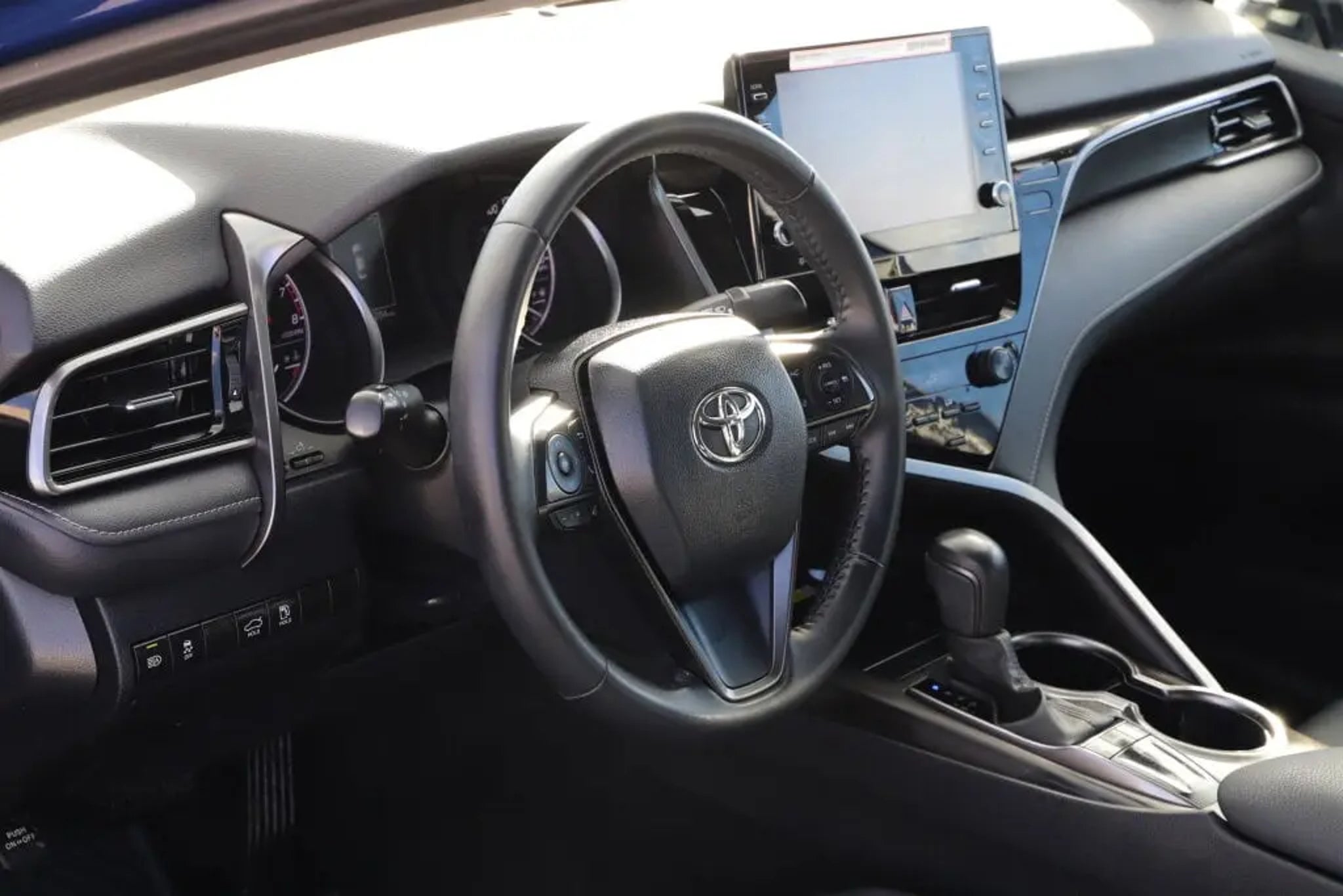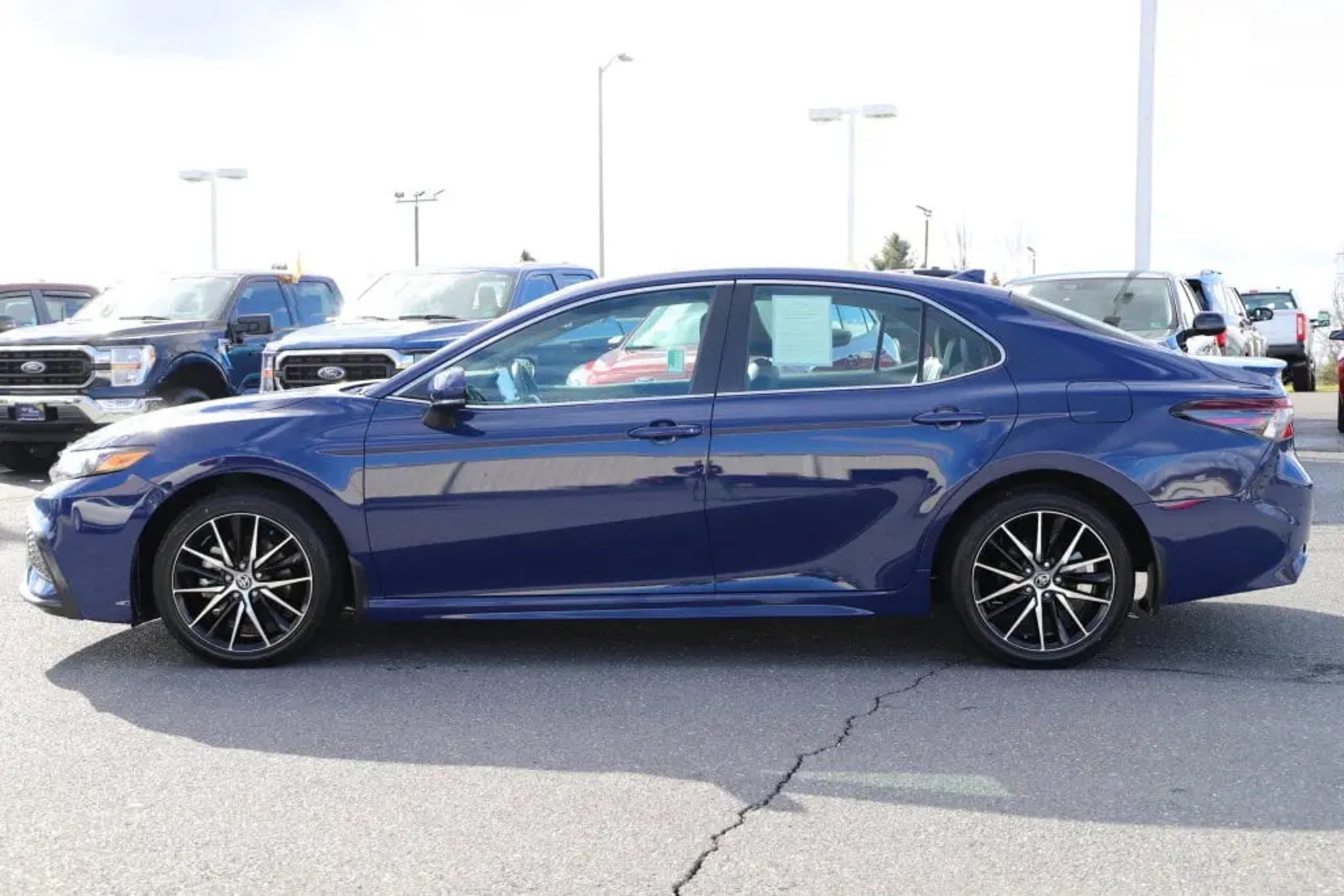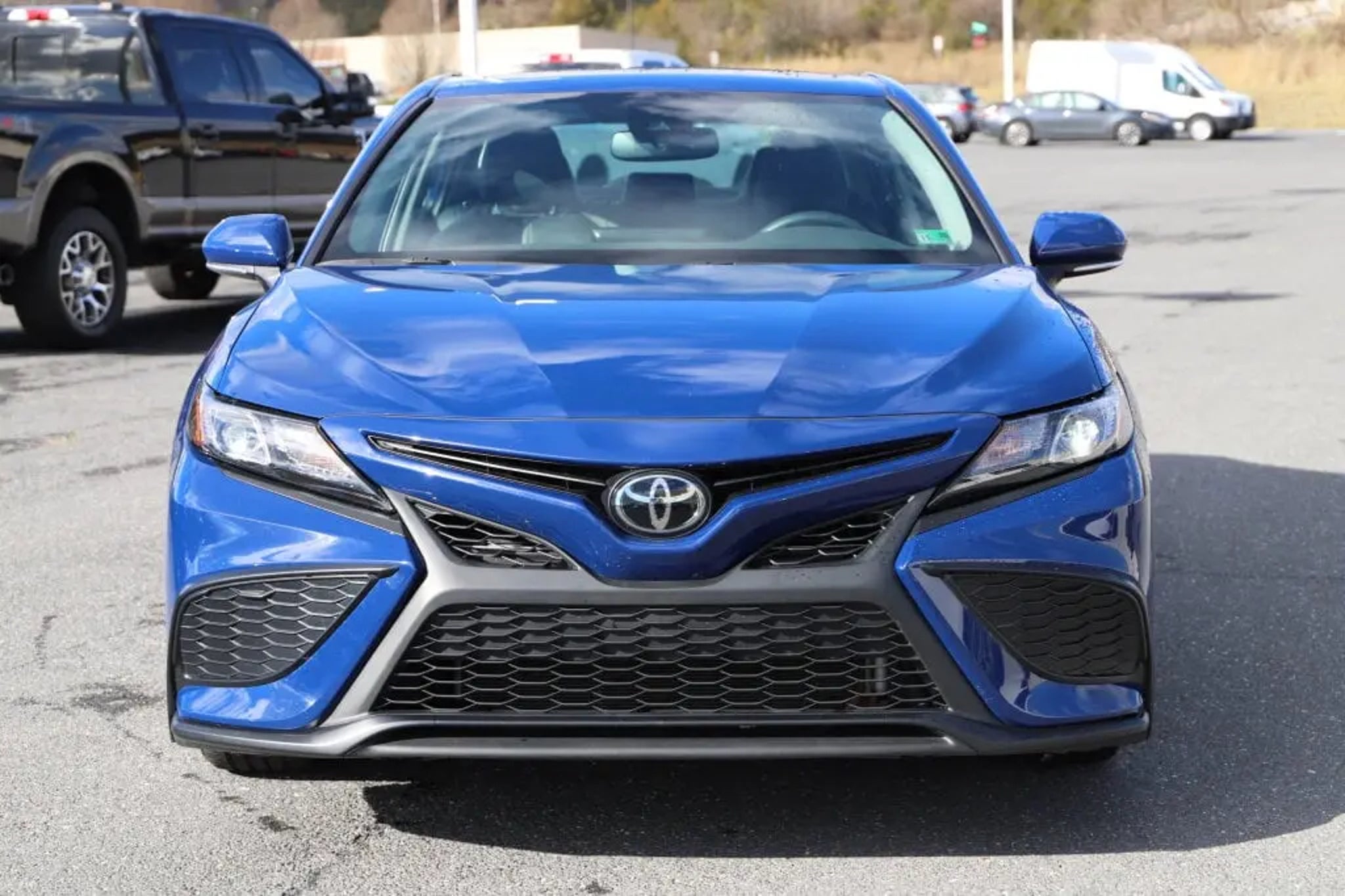 Recent Arrival! Camry SE, 4D Sedan, 2.5L I4 DOHC 16V, 8-Speed Automatic, FWD, Blue, 18 x 8J Alloy Wheels, 4-Wheel Disc Brakes, 6 Speakers, ABS brakes, Air Conditioning, AM/FM radio: SiriusXM, Apple CarPlay/Android Auto, Auto High-beam Headlights, Automatic temperature control, Brake assist, Bumpers: body-color, Delay-off headlights, Driver door bin, Driver vanity mirror, Dual front impact airbags, Dual front side impact airbags, Electronic Stability Control, Emergency communication system: Safety Connect (1-year trial), Exterior Parking Camera Rear, Four wheel independent suspension, Front anti-roll bar, Front Bucket Seats, Front Center Armrest, Front dual zone A/C, Front reading lights, Fully automatic headlights, Heated door mirrors, Illuminated entry, Knee airbag, Leather steering wheel, Low tire pressure warning, Occupant sensing airbag, Outside temperature display, Overhead airbag, Overhead console, Panic alarm, Passenger door bin, Passenger vanity mirror, Power door mirrors, Power driver seat, Power steering, Power windows, Radio data system, Radio: Audio, Rear anti-roll bar, Rear seat center armrest, Rear side impact airbag, Rear window defroster, Remote keyless entry, Security system, Speed control, Speed-sensing steering, Split folding rear seat, Spoiler, Sport SofTex Seat Trim w/Fabric Inserts, Steering wheel mounted audio controls, Tachometer, Telescoping steering wheel, Tilt steering wheel, Traction control, Trip computer, Turn signal indicator mirrors, Variably intermittent wipers. CARFAX One-Owner. Clean CARFAX.Blue 2024 Toyota Camry 8-Speed Automatic FWD 2.5L I4 DOHC 16V SE28/39 City/Highway MPG