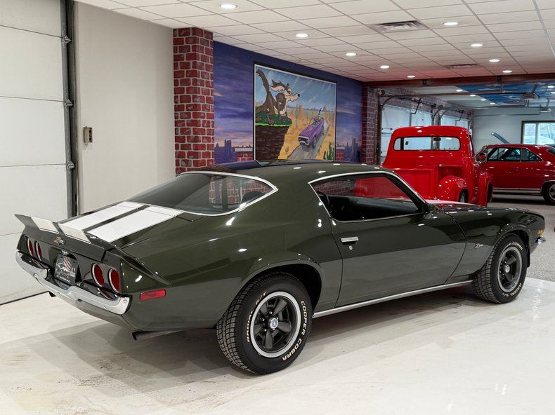 VEHICLE HIGHLIGHTS - Real Deal Z28 - #'s Matching 350ci/330hp LT1 V8 Engine - 4 Speed Manual Transmission - Comprehensive Restoration - Beautifully Restored in its Original Exterior Color Code 49 Antique Green exterior Paint - Nicely Restored Black Bucket Seat Interior - Upgraded Digital Gauges that look like factory - Z28 Wheels - Power Steering - Power Front Disc Brakes - Beautifully Detailed Undercarriage painted red oxide primer - Posi Rear End with 3.73 Gears - Very Nice Real Deal Z28 Camaro