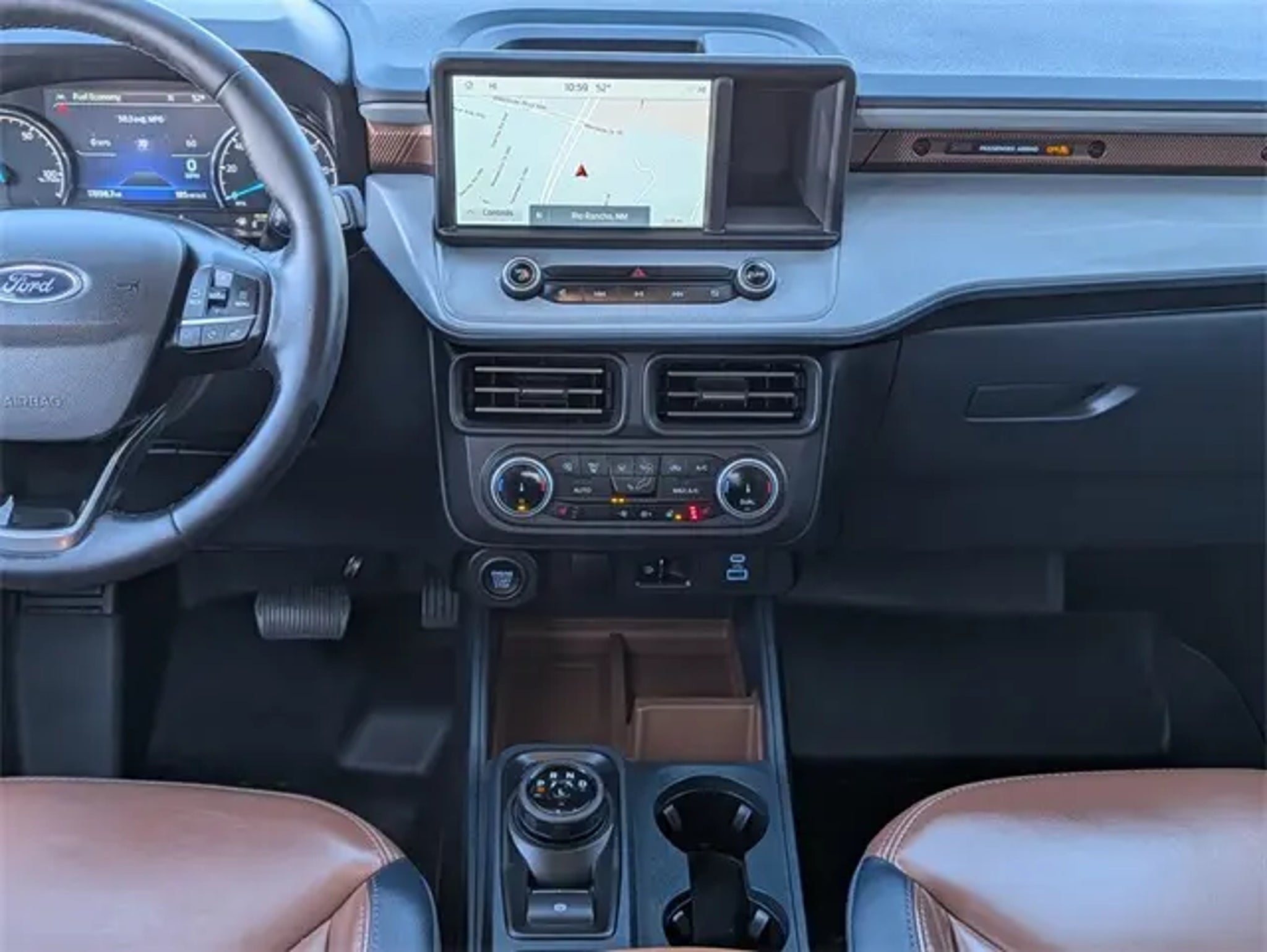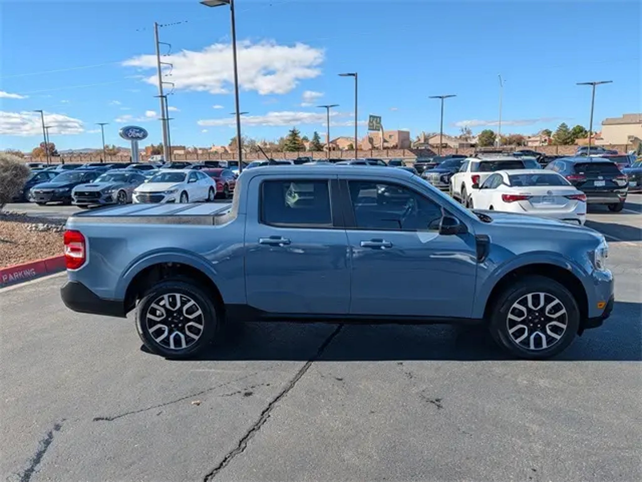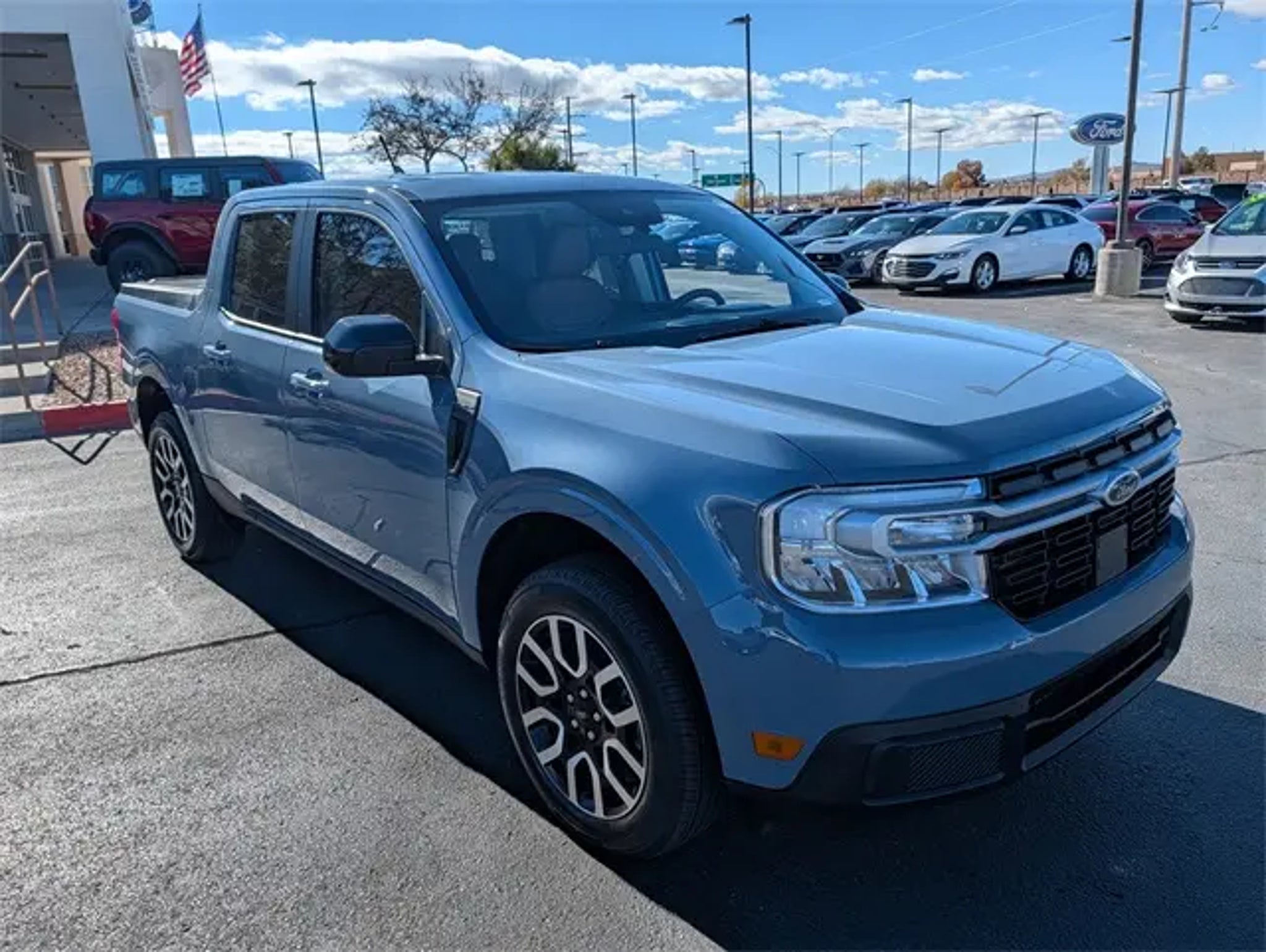 New Price! 2024 Ford Maverick Lariat Azure Gray Metallic Tri-Coat CARFAX One-Owner. Clean CARFAX. FWD CVT 2.5L I-4 Hybrid FRESH SERVICE, PASSED DEALER INSPECTION, RECENT OIL CHANGE, ONE OWNER, HEATED SEATS, Keyless Entry, Microsoft SYNC, Local Trade-in, Maverick Lariat, 4D Crew Cab, 2.5L I-4 Hybrid, CVT, FWD, Azure Gray Metallic Tri-Coat, Desert Brown w/ActiveX Trimmed Front Bucket Seats, 8 Speakers, Air Conditioning, AM/FM radio: SiriusXM, Automatic temperature control, Electronic Stability Control, Equipment Group 500A Standard, Exterior Parking Camera Rear, Front dual zone A/C, Fully automatic headlights, Heated front seats, Navigation System, Passenger door bin, Power driver seat, Power steering, Power windows, Radio data system, Radio: B&O Sound System by Bang & Olufsen, Rear Parking Sensors, Remote keyless entry, Security system, SiriusXM Radio, Speed control, Steering wheel mounted audio controls, SYNC 3 Communications & Entertainment System. Odometer is 4853 miles below market average! 42/33 City/Highway MPG http://www.realdeal.com/7ng99 Located in Rio Rancho New Mexico, and also serving Farmington, Santa Fe, Las Cruces, Los Lunas, Grants, Gallup and the greater Albuquerque Area.
