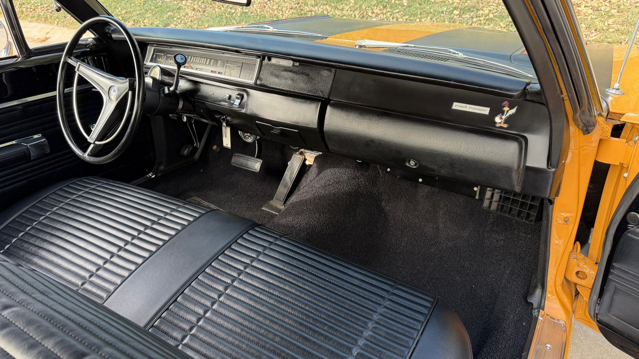 KC Classic Auto is proud to present this GORGEOUS 1969 Road Runner coupe, A.K.A. Linda!Comprehensive restoration with very few miles since completion. Refinished in its original and RARE, special order Bahama Yellow paint. The body and paint are in excellent condition! Black interior with newer seat covers.Powered by a 440ci V8 engine with a new Edelbrock 600cfm 4-barrel carburetor with electric choke and MSD ignition. Power is sent to the ground with a 727 automatic transmission and 8 3/4 rear end.Other options include an Air Grabber system, new Borgeson power steering system, front disc brakes, dual exhaust, and all new suspension with air shocks.Sitting on a set of new 15 Magnum 500 wheels with brand new BF Goodrich Radial T/A tires.Extremely high-quality restoration!! Visit KC Classic Auto online at kcclassicauto.com to see more pictures of this vehicle or call us at 913-888-1234.