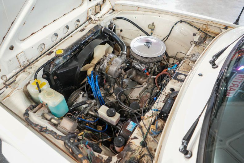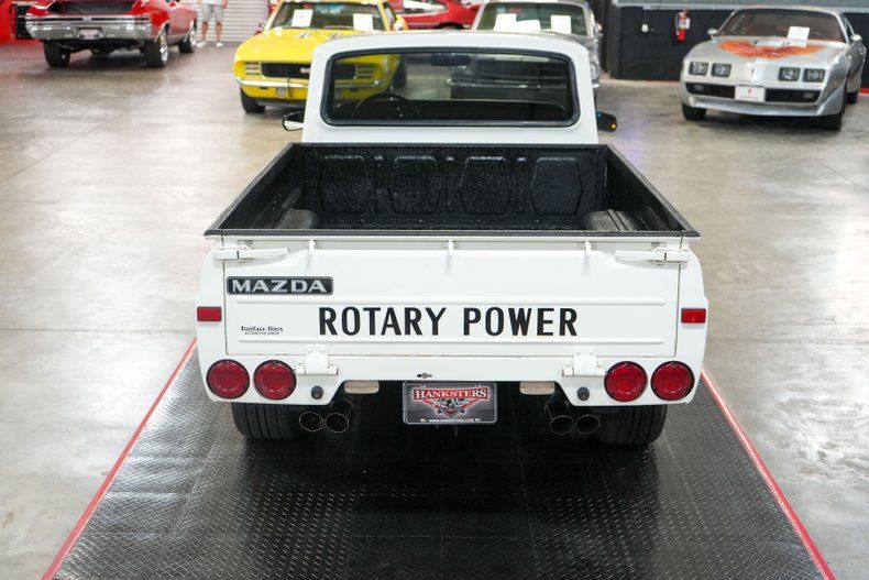 This 1977 Mazda Rotary Pickup is a rare and exciting compact truck powered by a 1.3L 13B twin rotor Wankel engine paired to a 5-speed manual transmission with a 3.91 rear gear ratio. It features power brakes, front disc brakes, and rear drum brakes, making it both responsive and fun to drive. The white exterior paint is paired with a striking black vinyl interior with white houndstooth inserts. Upgrades include a QFT 4-barrel carburetor, electric fuel pump, and 16" MB Motoring wheels wrapped in Hankook Ventus V2 Concept 2 tires. A unique blend of vintage style and rotary performance.