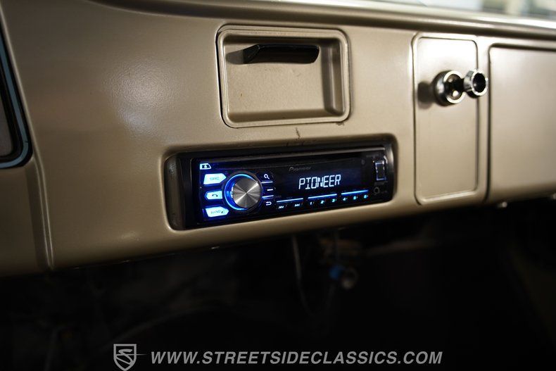Under the hood, this C10 boasts a healthy 350 V8 engine with a Holley single 4-barrel carburetor and Edelbrock intake, delivering a robust 5.7-liter powertrain experience. The 3-speed automatic transmission shifts smoothly, providing a driving experience that balances vintage muscle. Power steering and front disc brakes add to the truck's drivability, while dual exhaust enhances both performance and sound. The chassis and suspension are driver-quality, making this truck a reliable cruiser with plenty of character.