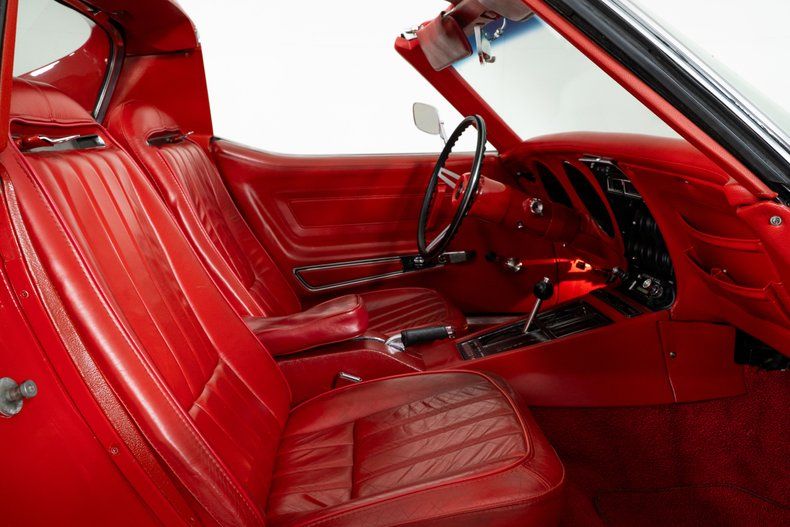 This 1971 Corvette captures everything people love about an early C3 Corvette. It retains its numbers-matching 350 V8 and Turbo-Hydramatic automatic transmission, a pairing that gives this Chevrolet Corvette the smooth, confident feel the C3 generation is known for. Finished in Mille Miglia Red with T-tops and a chrome luggage rack, it has the unmistakable presence of a true Corvette.