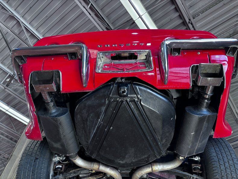 Inside, the red leather bucket seats set the tone for a clean and correct cabin. Factory air conditioning, power steering, power brakes, and a tilt-and-telescopic column give this red Corvette the comfort features that make it easy to enjoy on longer drives. An upgraded AM/FM radio with auxiliary input adds convenience while keeping the vintage look intact.