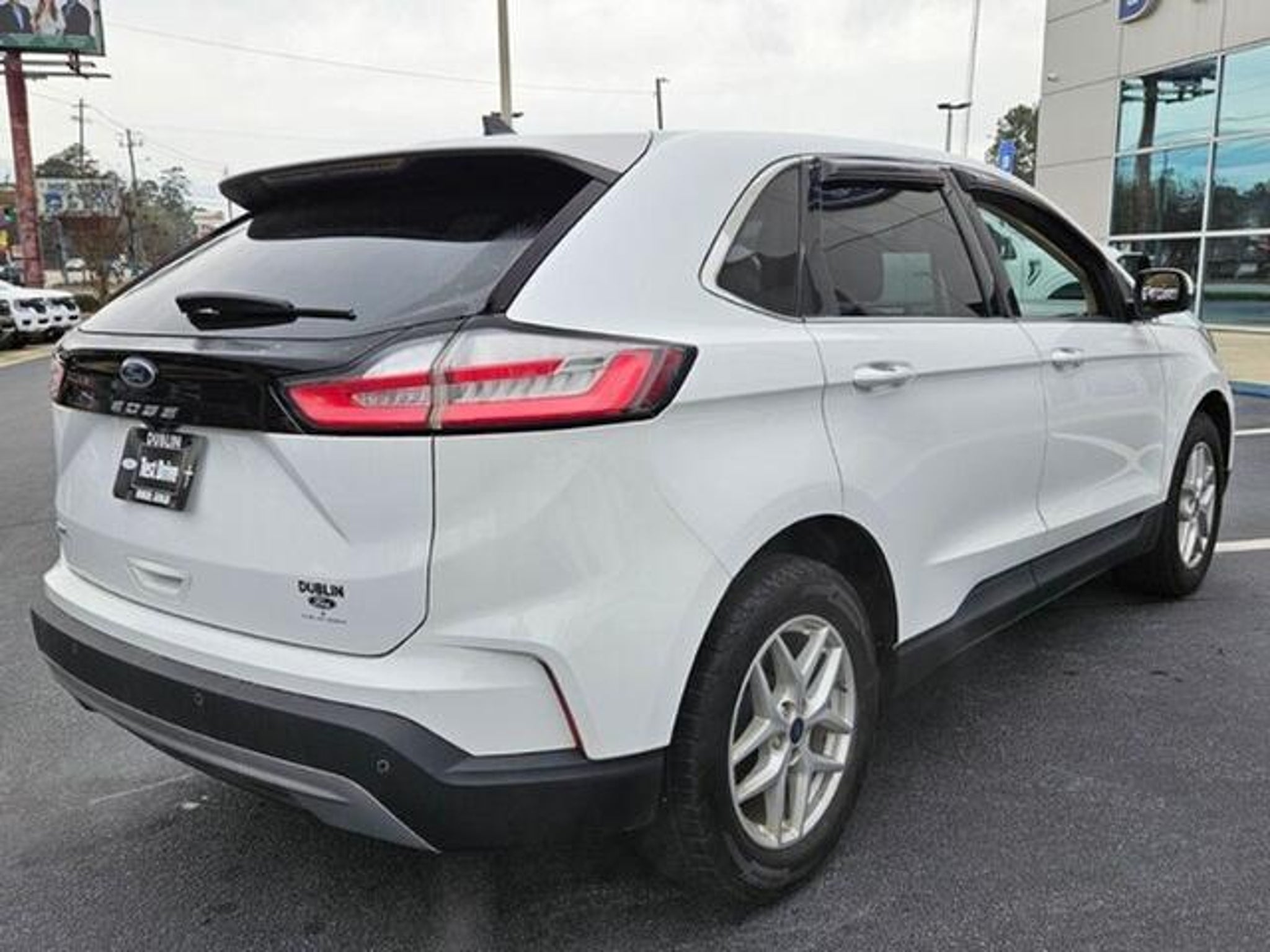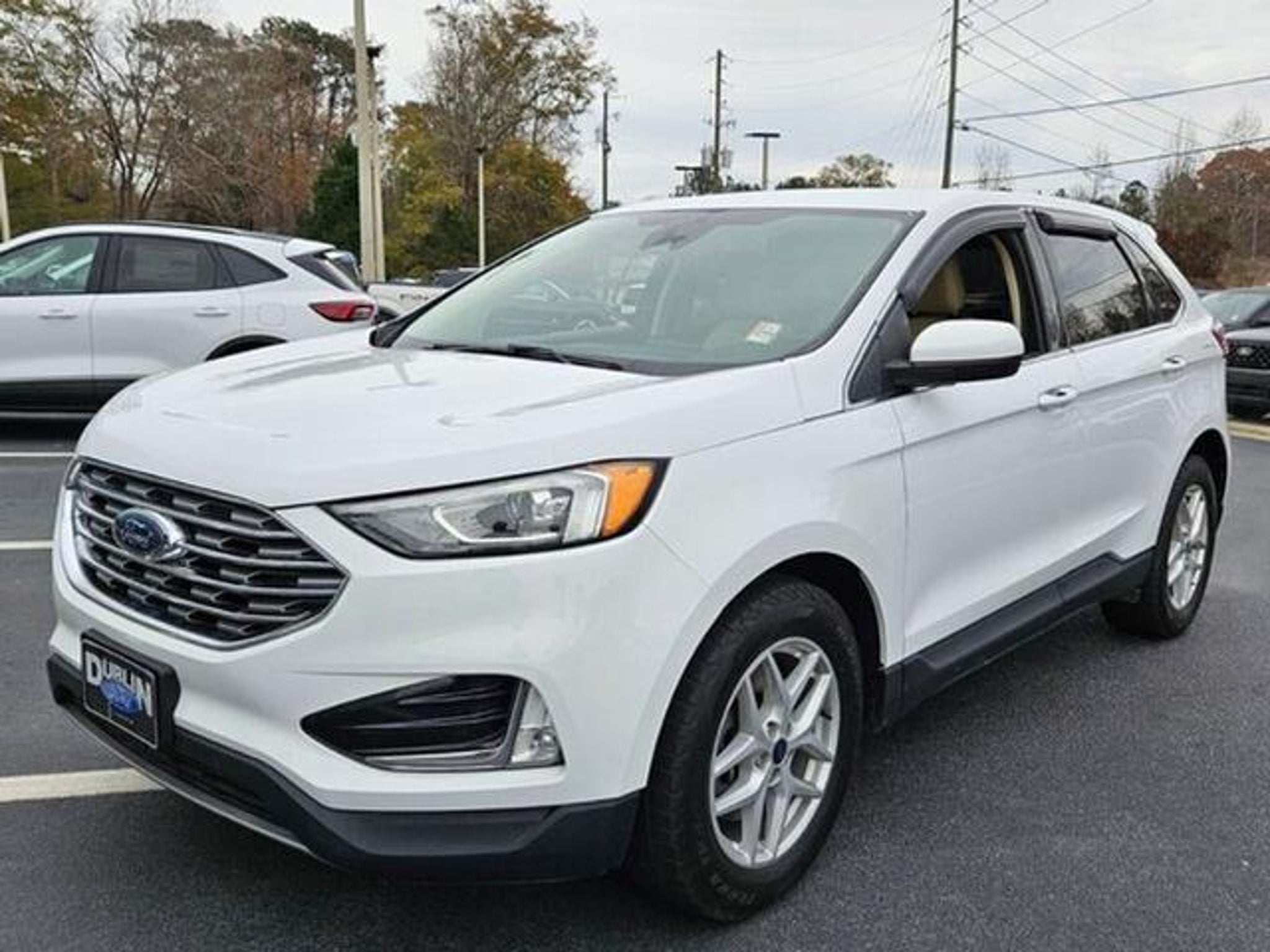 *Vehicle Details* Elevate your daily commute with this 2021 Ford Edge SEL now available in Dublin GA. This striking midsize SUV pairs a responsive 2.0L 4-cylinder gasoline engine with smooth front-wheel drive for an efficient confident ride ? ideal for city errands and highway cruising alike. Inside premium leather seats provide comfort and durability for driver and passengers while remote start adds convenience on chilly mornings or hot afternoons. Stay connected and entertained with Apple CarPlay integration making hands-free navigation calls and music effortless. Safety is prioritized with rear parking sensors and Cross-Traffic Alert helping you back out of spaces and navigate crowded lots with greater awareness. The SEL trim balances practical features and modern amenities delivering a refined cabin experience without excess cost. This Ford Edge has been carefully inspected and is offered at the best price in the Dublin GA area providing exceptional value for buyers seeking performance comfort and advanced technology. Whether youre upgrading your family vehicle or seeking a reliable daily driver this Ford Edge delivers a compelling combination of style features and efficiency. Schedule a test drive today to experience the comfortable leather seating intuitive Apple CarPlay and helpful safety features for yourself. Competitive pricing and local availability in Dublin GA make this 2021 Ford Edge SEL a smart choice. *Equipment* Bluetooth technology is built into this Ford Edge keeping your hands on the steering wheel and your focus on the road. The leather seats in this vehicle are a must for buyers looking for comfort durability and style. Never get into a cold vehicle again with the remote start feature on the vehicle. The rear parking assist technology on this vehicle will put you at ease when reversing. The system alerts you as you get closer to an obstruction. Good News! This certified CARFAX 1-owner vehicle has only had one owner before you. It keeps you comfortable with Auto Climate. Protect this Ford Edge from unwanted accidents with a cutting edge backup camera system. Apple CarPlay: Seamless smartphone integration for this unit - stay connected and entertained on the go! It offers Android Auto for seamless smartphone integration. This units Cross-Traffic Alert: Safeguarding you from unexpected traffic when reversing. Set the temperature exactly where you are most comfortable in the Ford Edge. The fan speed and temperature will automatically adjust to maintain your preferred zone climate. *Packages* Convenience Package: Wireless Charging Pad; Universal Garage Door Opener (UGDO); Perimeter Alarm; Power Liftgate; Remote Start System; 110V/150W AC Power Outlet. Equipment Group 201A: 18 Sparkle Silver-Painted Aluminum Wheels; 3.80 Axle Ratio; ActiveX Seating Material Heated Bucket Seats; 8-Speed Automatic Transmission; Twin-Scroll 2.0L EcoBoost Engine; 245/60R18 AS BSW Tires; TBD GVWR; AM/FM Stereo/MP3 Capable Radio. Mini Spare Wheel. **Equipment listed is based on original vehicle build and subject to change. Please confirm the accuracy of the included equipment by calling the dealer prior to purchase.**