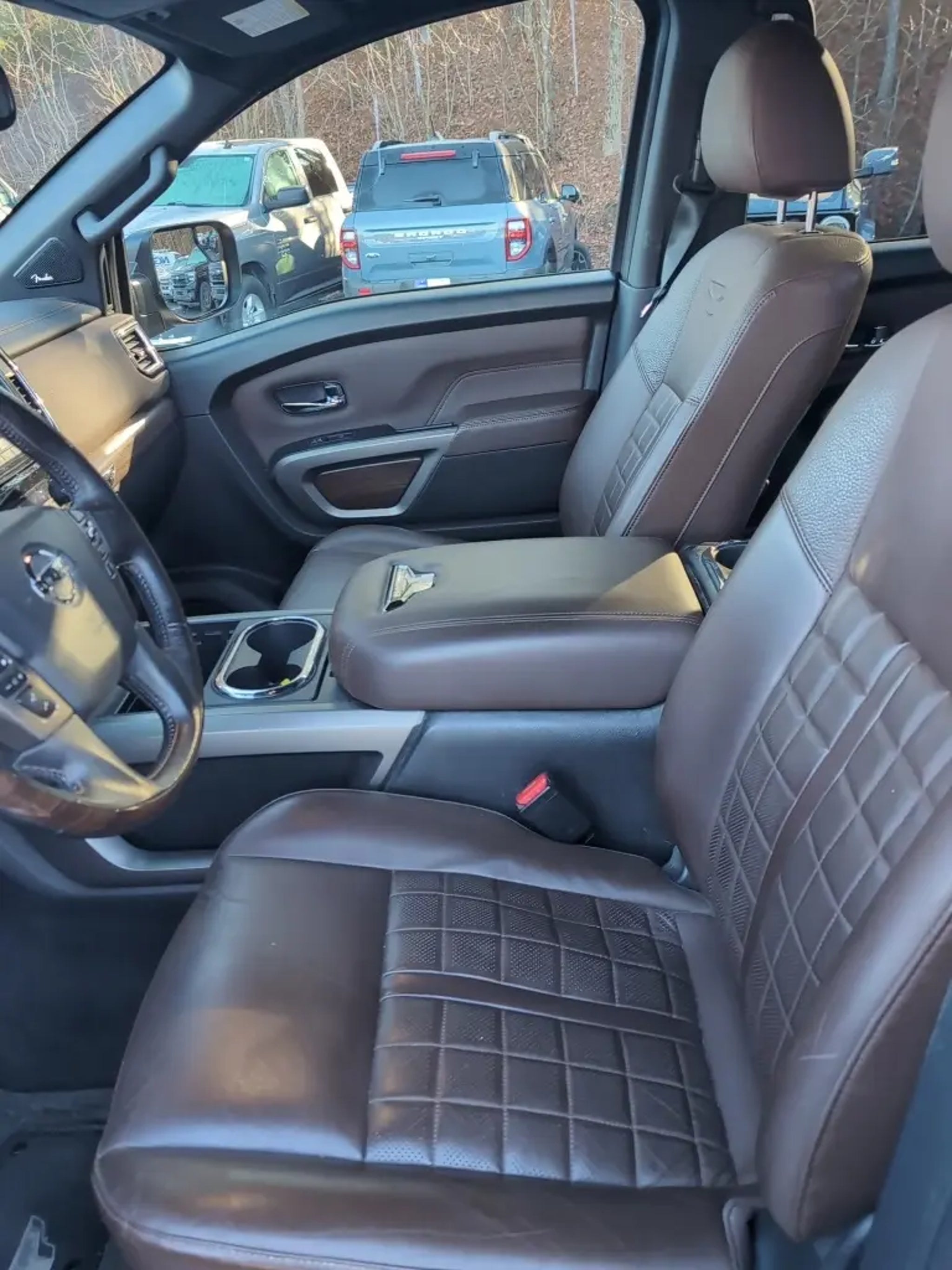 Courtesy Ford and Lincoln of Rome 101 Hwy 411 E Rome, Ga 3016 . CARFAX One-Owner. Clean CARFAX. Pearl White Metallic 2021 Nissan Titan Platinum Reserve 4WD 4WD Platinum Reserve 4WD **LOCAL TRADE**, 360-Degree Camera, Android Auto, Apple Carplay, Auto Emergency Braking, Auto LED Headlights, Backup Camera, Blind Spot Monitoring, Bluetooth w/ Audio Streaming, Cold Weather Package, Driver Attention Warning, Foward Collison Alert, Hill Start Assist, Lane Keeping System, Leather Seats, Memory Package, Parking Sensors, Power Mirror Package, Power Package, Power Sliding Rear Window, Push Button Start, Rear Cross Traffic Alert, Remote Start, Reverse Brake Assist, Reverse Sensing, Tow Package, Trailer Package, WiFi Hotspot Capable, 9 Color Touchscreen, 4D Crew Cab, 5.6L V8 DOHC 32V 400hp, 9-Speed Automatic, 4WD, 12 Speakers, 4-Wheel Disc Brakes, ABS brakes, All Season Floor Mats, AM/FM radio: SiriusXM, Auto High-beam Headlights, Auto tilt-away steering wheel, Auto-dimming door mirrors, Auto-dimming Rear-View mirror, Automatic temperature control, Blind Spot Warning, Brake assist, Compass, Delay-off headlights, Electronic Stability Control, Emergency communication system: NissanConnect Services, Exterior Parking Camera Rear, Front Bucket Seats, Front Center Armrest, Front dual zone A/C, Front fog lights, Front wheel independent suspension, Fully automatic headlights, Garage door transmitter: HomeLink, Genuine wood dashboard insert, Genuine wood door panel insert, Heated & Cooled Front Captain's Seats, Heated door mirrors, Heated front seats, Heated rear seats, Heated steering wheel, Illuminated entry, Leather Shift Knob, Leather steering wheel, Low tire pressure warning, Memory seat, Navigation system: NissanConnect Navigation, NissanConnect featuring Apple CarPlay and Android Auto, NissanConnect Services Powered By SiriusXM, Off Road Protection Package, Outside temperature display, Overhead console, Panic alarm, Platinum Reserve Mud Flaps, Power door mirrors, Power driver seat, Premium Leather-Appointed Seat Trim, Radio data system, Radio: NissanConnect w/Navigation, Rain sensing wipers, Rear step bumper, Remote keyless entry, Security system, Speed control, Speed-sensing steering, Speed-Sensitive Wipers, Split folding rear seat, Steering wheel memory, Steering wheel mounted audio controls, Telescoping steering wheel, Tilt steering wheel, Traction control, Trip computer, Turn signal indicator mirrors, Ventilated front seats, Wheels: 20 x 8 Dark Painted & Machined Clad. Certified. Certification Program Details: Ford Blue Certified Details: * Vehicle History * 139 Point Inspection * Roadside Assistance * Limited Warranty: 3 Month/4,000 Mile (whichever comes first) after new car warranty expires or from certified purchase date * Warranty Deductible: $100 * Transferable Warranty * and 11,000 FordPass Rewards Points to use toward first maintenance visit **NOT ALL PRE-OWNED CAR/TRUCKS COME WITH 2 KEYS**