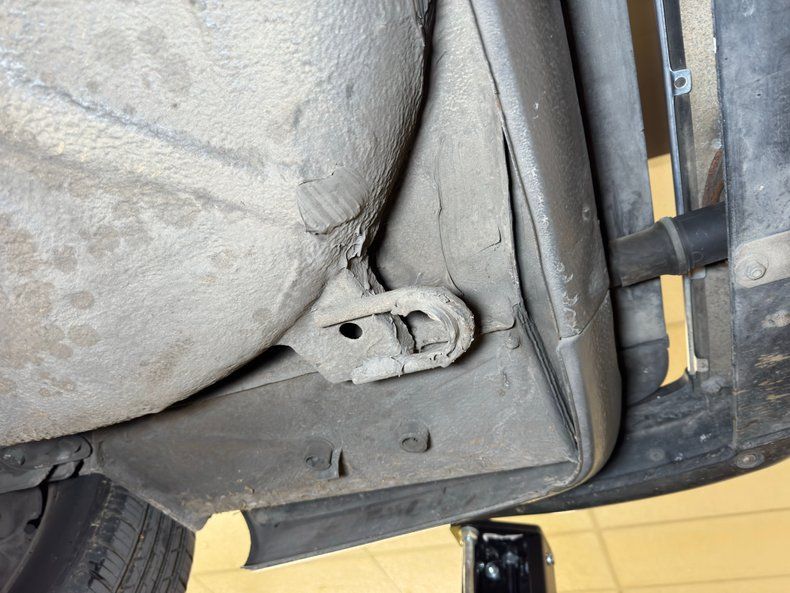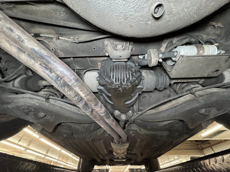 Some residual oil is noted on the rear differential and transmission pan with a touch of dampness on the oil pan as well. In general, we have driver quality conditions here with typical road grime, clear knuckles, and minimal surface rust. Independent coil spring suspension is front and rear and so are power disc brakes. Dual exhaust meets at the stock style muffler in pack and exude twin tips.