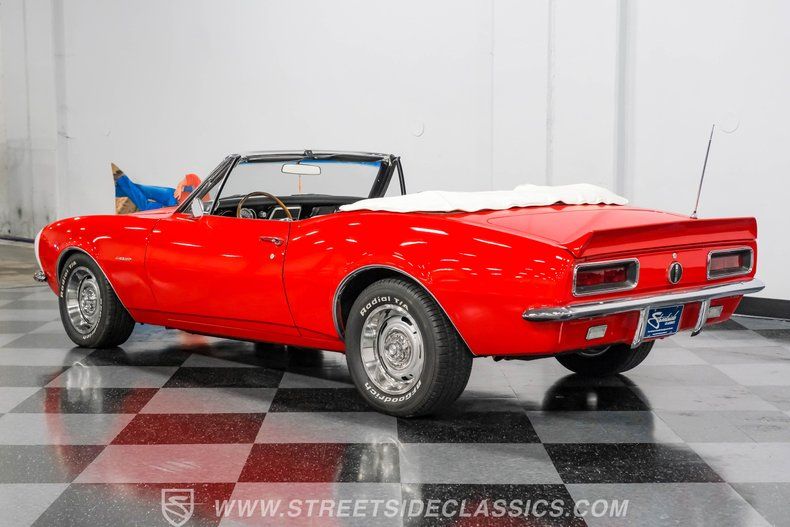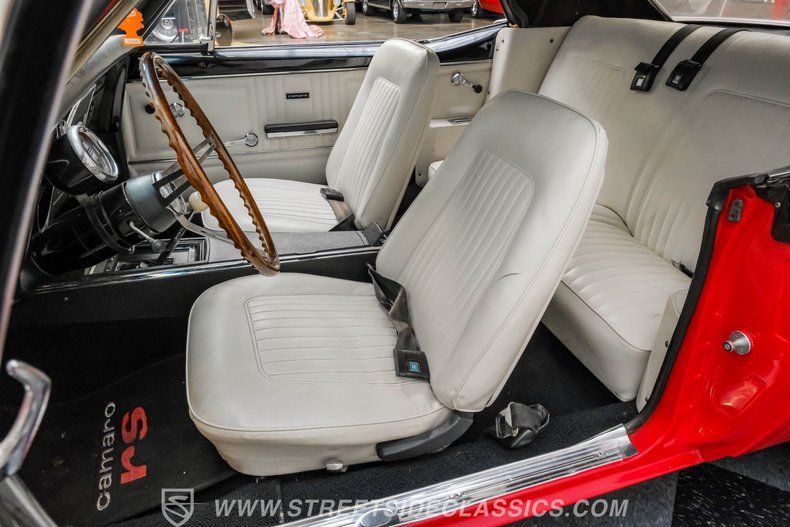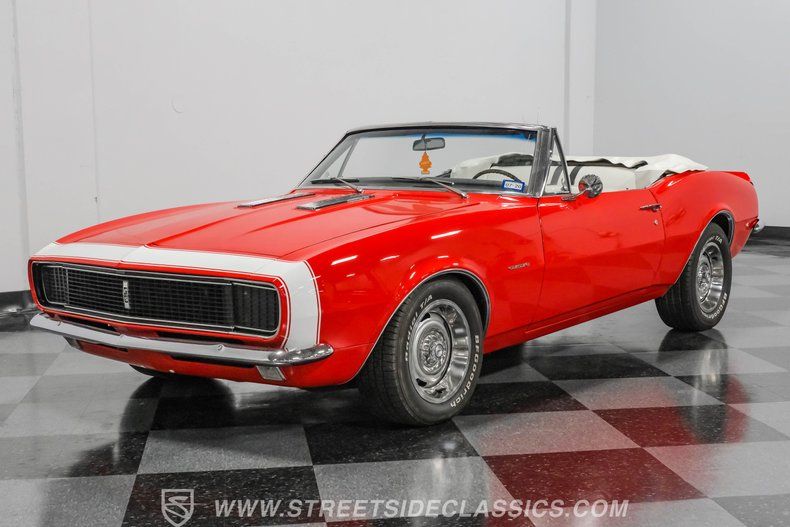 This 1967 Chevrolet Camaro RS Tribute Convertible captures the essence of classic American performance with a modern twist, promising not just nostalgia but a thrilling experience on the road. Its striking red exterior, highlighted by the iconic white Bumble Bee nose stripe and complemented by a white vinyl convertible soft top, makes a bold statement wherever it goes. Whether cruising down boulevard or parked at a show, this Camaro invites you to own a piece of automotive history that is as exciting to drive as it is to admire.
