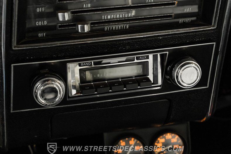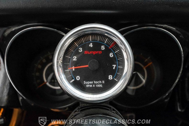 Inside, the Camaro offers a nicely appointed white bucket seat interior with matching door panels and black carpeting that adds a touch of contrast and style. The factory dash and gauges retain their classic look, enhanced by a wood-rim steering wheel with a Sunpro Tach on the column and a retro-style AM/FM/Aux radio. Additional under-dash AutoGage gauges monitor oil pressure and water temperature, while the factory center console houses a Hurst shifter, blending vintage aesthetics with functional upgrades for the discerning driver.
