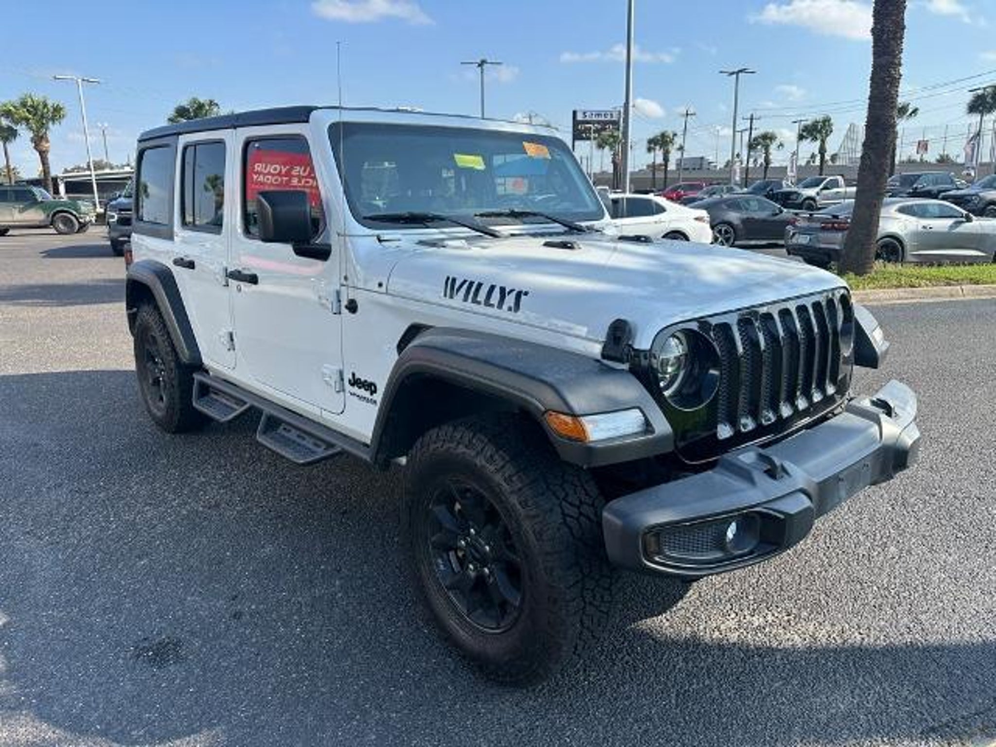 This 2020 Jeep Wrangler Unlimited Willys in Bright White Clearcoat comes with the following features: 3.6L V6 24V VVT 8-Speed Automatic 4WD LED Headlamp & Fog Lamp Group (Front LED Fog Lamps and LED Reflector Headlamps), Quick Order Package 24W Willys (4-Wheel Drive Swing Gate Decal, Anti-Lock 4-Wheel Disc HD Brakes, Anti-Spin Differential Rear Axle, Automatic Headlamps, Black Grille, Black Trail Rated Badge, Bridgestone Brand Tires, Deep Tint Sunscreen Windows, Front 1-Touch Down Power Windows, Leather Wrapped Steering Wheel, Matte Black Jeep Badge, Power Heated Mirrors, Remote Keyless Entry, Security Alarm, Speed Sensitive Power Locks, Sun Visors w/Illuminated Vanity Mirrors, Wheels: 17 x 7.5 Moab Black Aluminum, Willys, Willys Hood Decal, and Wrangler Decal), Trailer Tow & HD Electrical Group (240 Amp Alternator, 7 & 4 Pin Wiring Harness, 700 Amp Maintenance Free Battery, Auxiliary Switches, and Class II Receiver Hitch), Sames Certified Certified, 1-Year SiriusXM Radio Service, 3.45 Rear Axle Ratio, 4-Wheel Disc Brakes, 8 Speakers, ABS brakes, Air Conditioning, AM/FM radio, Aux Battery, Black 3-Piece Hard Top, Brake assist, Cloth Low-Back Bucket Seats, Compass, Delay-off headlights, Driver door bin, Driver vanity mirror, Dual front impact airbags, Dual front side impact airbags, Electronic Stability Control, Freedom Panel Storage Bag, Front anti-roll bar, Front Bucket Seats, Front Center Armrest w/Storage, Front fog lights, Front reading lights, Integrated roll-over protection, Integrated Voice Command w/Bluetooth, Jeep Trail Rated Kit, Low tire pressure warning, MOPAR All-Weather Floor Mats (DISC), No Soft Top, Non-Lock Fuel Cap w/o Discriminator, Normal Duty Suspension, Occupant sensing airbag, Outside temperature display, ParkView Rear Back-Up Camera, Passenger door bin, Passenger vanity mirror, Power steering, Radio data system, Radio: Uconnect 3 w/5 Display, Rear anti-roll bar, Rear reading lights, Rear Window Defroster, Rear Window Wiper/Washer, SiriusXM Satellite Radio, Speed control, Split folding rear seat, Steering wheel mounted audio controls, Stop-Start Dual Battery System, Tachometer, Telescoping steering wheel, Tilt steering wheel, Traction control, Trip computer, Variably intermittent wipers, and Wheels: 17 x 7.5 Black Steel Styled. Certification Program Details: 2 Year/100,000 Mile Limited Powertrain Warranty, Rental Reimbursement, Road Side Assist, Emergency Travel Expense Reimbursement, Tire Hazard Protection. See dealer for details. Sames Auto Group stores have been in business for