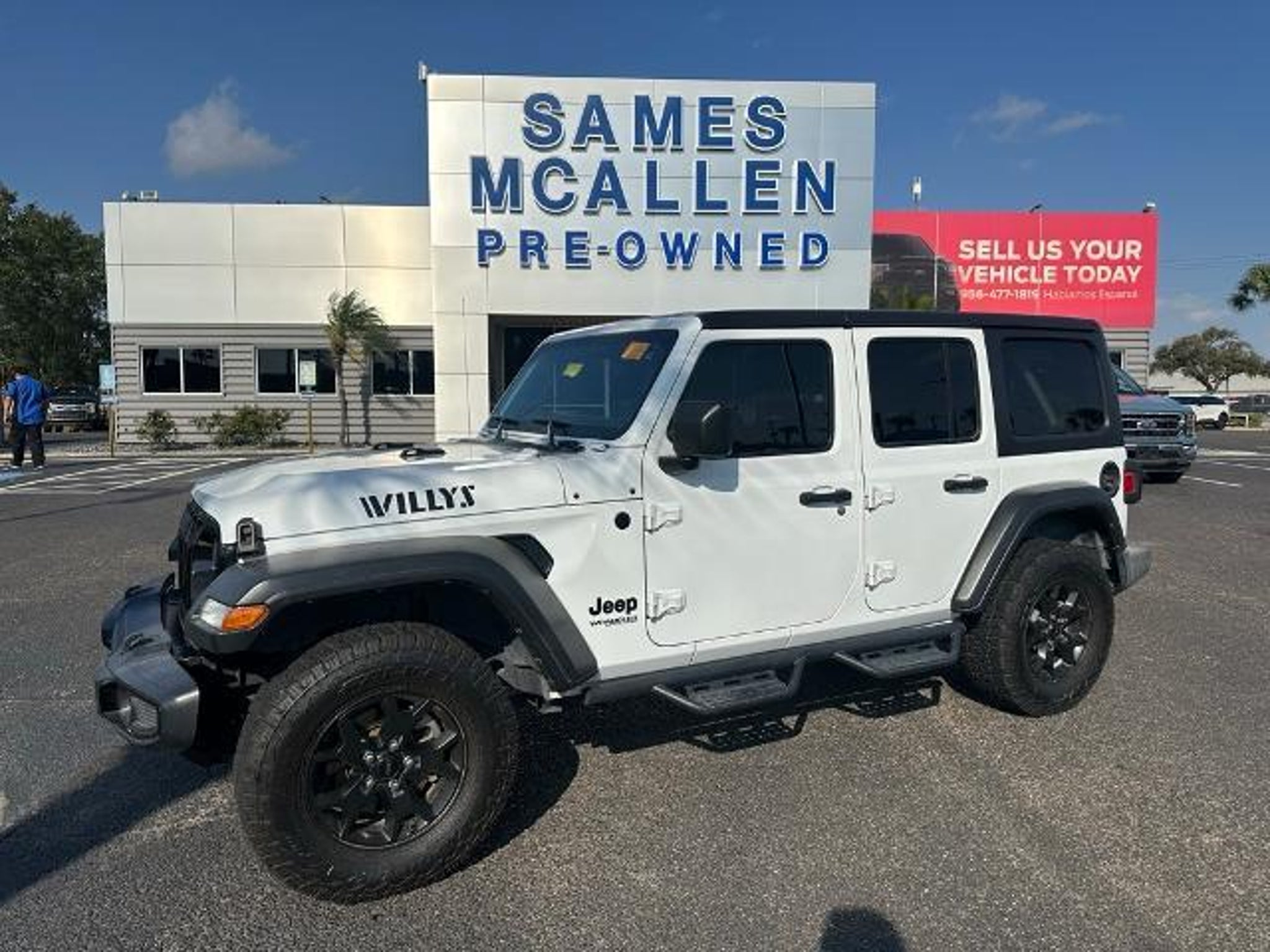 This 2020 Jeep Wrangler Unlimited Willys in Bright White Clearcoat comes with the following features: 3.6L V6 24V VVT 8-Speed Automatic 4WD LED Headlamp & Fog Lamp Group (Front LED Fog Lamps and LED Reflector Headlamps), Quick Order Package 24W Willys (4-Wheel Drive Swing Gate Decal, Anti-Lock 4-Wheel Disc HD Brakes, Anti-Spin Differential Rear Axle, Automatic Headlamps, Black Grille, Black Trail Rated Badge, Bridgestone Brand Tires, Deep Tint Sunscreen Windows, Front 1-Touch Down Power Windows, Leather Wrapped Steering Wheel, Matte Black Jeep Badge, Power Heated Mirrors, Remote Keyless Entry, Security Alarm, Speed Sensitive Power Locks, Sun Visors w/Illuminated Vanity Mirrors, Wheels: 17 x 7.5 Moab Black Aluminum, Willys, Willys Hood Decal, and Wrangler Decal), Trailer Tow & HD Electrical Group (240 Amp Alternator, 7 & 4 Pin Wiring Harness, 700 Amp Maintenance Free Battery, Auxiliary Switches, and Class II Receiver Hitch), Sames Certified Certified, 1-Year SiriusXM Radio Service, 3.45 Rear Axle Ratio, 4-Wheel Disc Brakes, 8 Speakers, ABS brakes, Air Conditioning, AM/FM radio, Aux Battery, Black 3-Piece Hard Top, Brake assist, Cloth Low-Back Bucket Seats, Compass, Delay-off headlights, Driver door bin, Driver vanity mirror, Dual front impact airbags, Dual front side impact airbags, Electronic Stability Control, Freedom Panel Storage Bag, Front anti-roll bar, Front Bucket Seats, Front Center Armrest w/Storage, Front fog lights, Front reading lights, Integrated roll-over protection, Integrated Voice Command w/Bluetooth, Jeep Trail Rated Kit, Low tire pressure warning, MOPAR All-Weather Floor Mats (DISC), No Soft Top, Non-Lock Fuel Cap w/o Discriminator, Normal Duty Suspension, Occupant sensing airbag, Outside temperature display, ParkView Rear Back-Up Camera, Passenger door bin, Passenger vanity mirror, Power steering, Radio data system, Radio: Uconnect 3 w/5 Display, Rear anti-roll bar, Rear reading lights, Rear Window Defroster, Rear Window Wiper/Washer, SiriusXM Satellite Radio, Speed control, Split folding rear seat, Steering wheel mounted audio controls, Stop-Start Dual Battery System, Tachometer, Telescoping steering wheel, Tilt steering wheel, Traction control, Trip computer, Variably intermittent wipers, and Wheels: 17 x 7.5 Black Steel Styled. Certification Program Details: 2 Year/100,000 Mile Limited Powertrain Warranty, Rental Reimbursement, Road Side Assist, Emergency Travel Expense Reimbursement, Tire Hazard Protection. See dealer for details. Sames Auto Group stores have been in business for