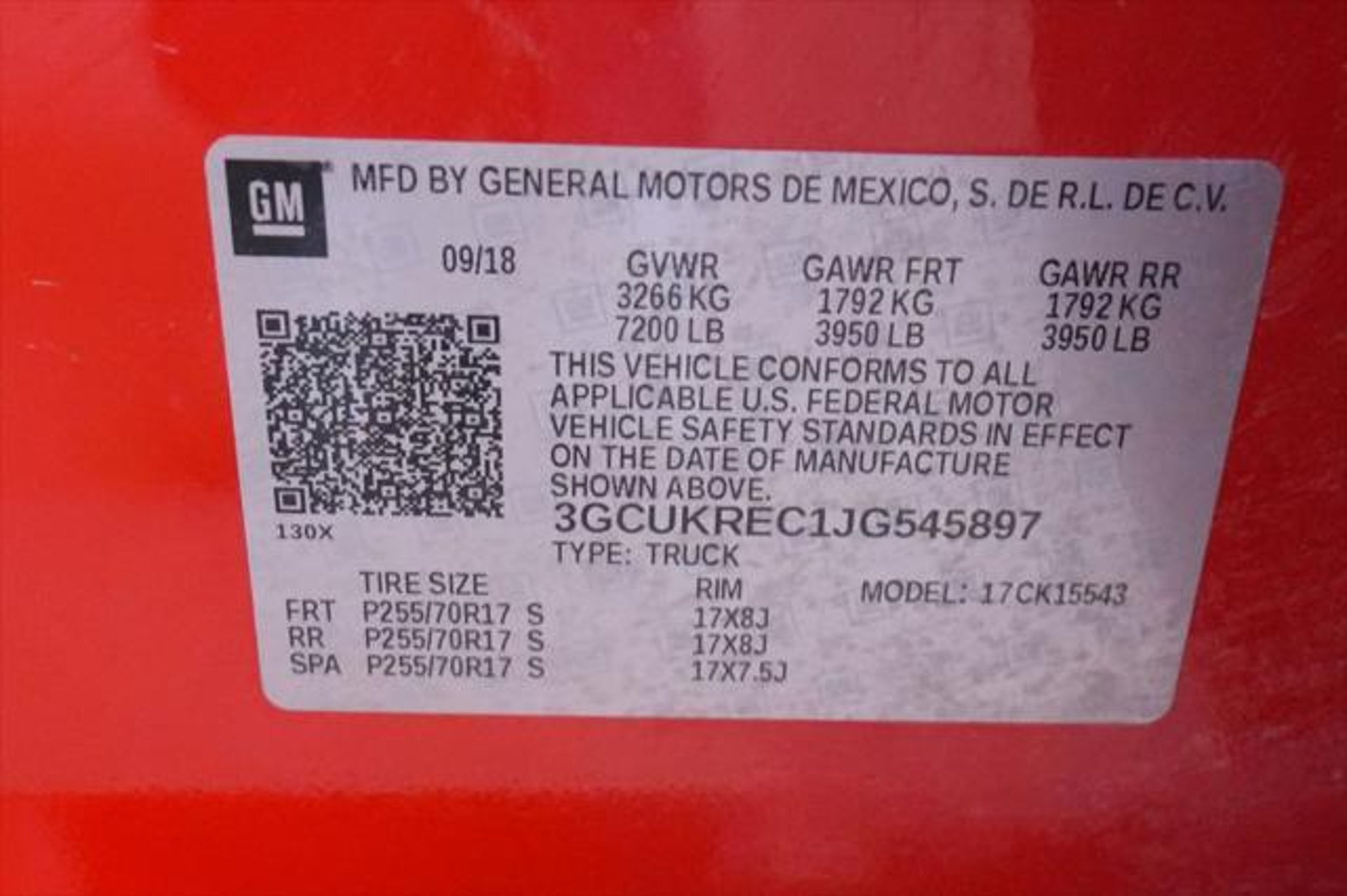 VIN 3GCUKREC1JG545897