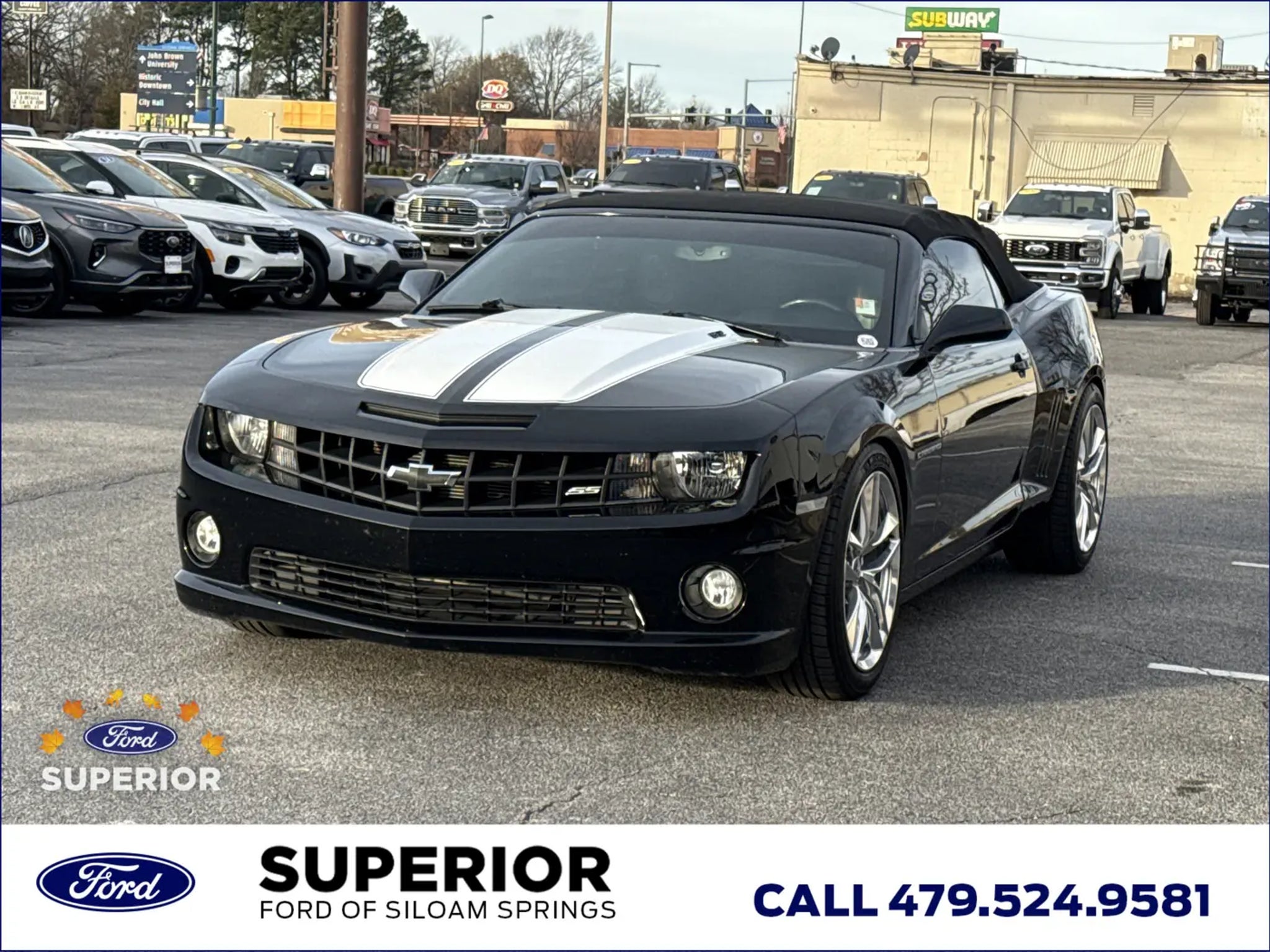 Get ready to unleash pure American muscle and enjoy the open air in this exciting 2011 Chevrolet Camaro SS Convertible. Finished in a classic Black, this 2D Convertible is the epitome of performance and style. Under the hood is the formidable 6.2L V8 SFI engine, delivering powerful acceleration and an unmistakable rumble to the Rear-Wheel Drive (RWD) system. This is the iconic SS model, built to thrill and equipped with features that make it a modern legend.True SS Performance and HandlingAs a genuine SS model, this Camaro is engineered for high performance. It features 4-Wheel Antilock 4-Wheel Disc Brakes for precise stopping power and Stainless-Steel Dual-Outlet Exhaust for that deep, aggressive V8 sound. The performance driving experience is further enhanced by the presence of a Hurst Short-Throw Shifter (if manual), providing quick and precise gear changes that connect you directly to the legendary power. The StabiliTrak system ensures control and stability under hard driving.Premium Touches in the 2SS PackageThis convertible comes equipped with the high-end Preferred Equipment Group 2SS, which layers luxury and technology onto the performance chassis. The interior features Leather-Appointed Seat Trim and a Leather-Wrapped Shift Knob, creating a refined cockpit. You'll stay comfortable in any weather with Heated Driver & Front Passenger Seats. For an added dose of cool, the Head-Up Display projects vital information onto the windshield, keeping your eyes focused on the road ahead.Tech and Convenience for the Open RoadEnjoy your favorite tunes with the Boston Acoustics Premium 8-Speaker System, which provides rich, high-quality sound even with the top down. Connectivity is simple with Bluetooth For Phone and a convenient Audio System Feature USB Port. Essential controls like Electronic Cruise Control and Steering Wheel Mounted Audio Controls are right at your fingertips. Practical features like Ultrasonic Rear Parking Assist and a Garage door transmitter add ease to everyday driving.Ready for Sun and SoundThere's nothing quite like cruising with the top down in a V8-powered convertible. With a reliable Power convertible roof, you can switch from coupe to cruiser in moments. Analog gauges, Front Sport Bucket Seats, and the included Auxiliary Multi-Function Gauges complete the sports car experience. This 2011 Camaro SS Convertible is an exciting opportunity to own an icon that perfectly balances raw power with everyday enjoyment.Faster. Simpler. More Transparent. Superior Automotive Group has helped thousands of customers find the right car by leveraging one of Arkansas' largest selections of new and pre-owned vehicles at unparalleled prices. Yet, it's our extra-mile customer service and uncommonly candid and respectful staff that have won the trust and loyalty of Arkansas drivers for 30 years. Come visit one of our Superior dealerships today and let us exceed your expectations.